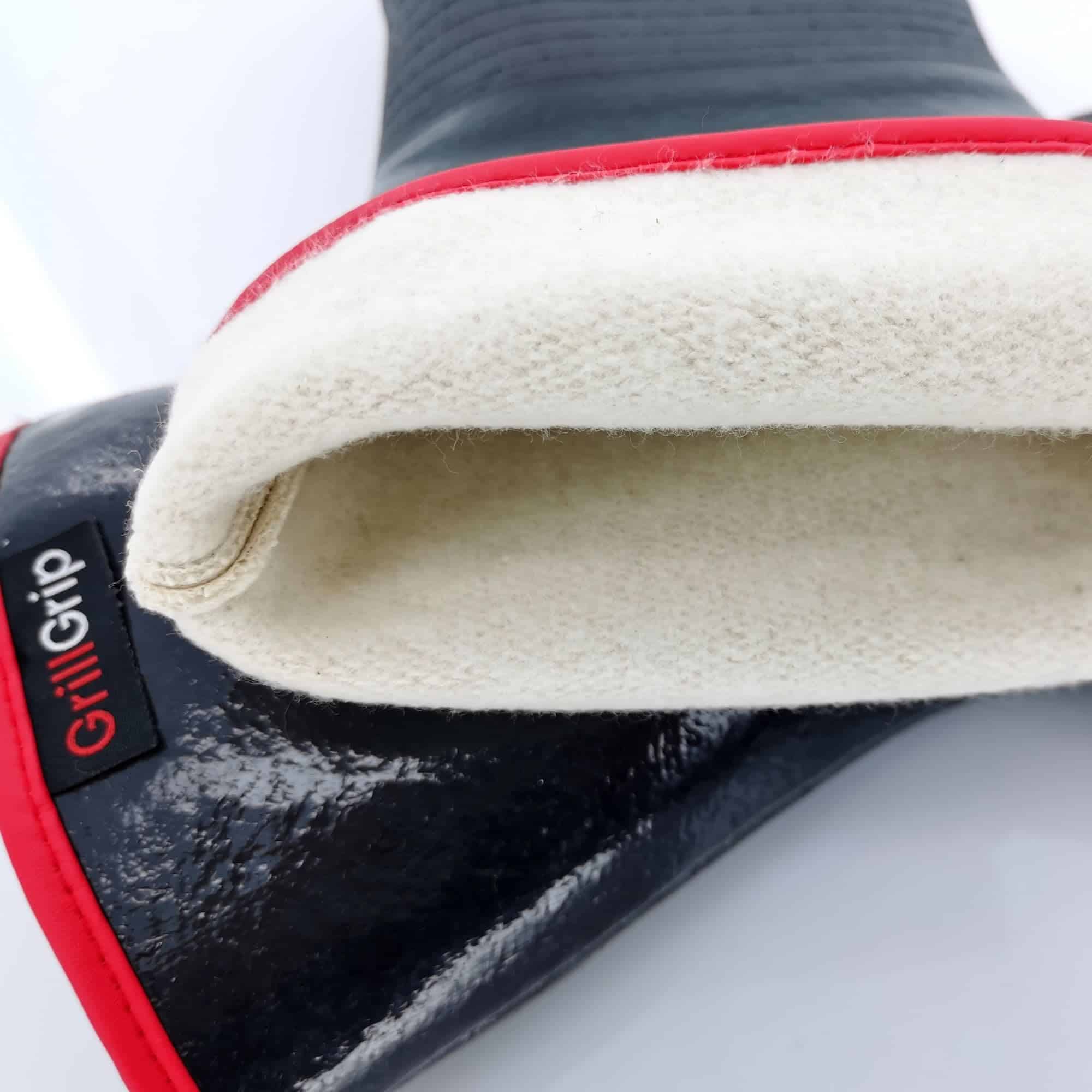 4. Agarre Texturizado Antideslizante El diseño de palma con patrón elevado proporciona un control total al levantar bandejas calientes, hierro fundido o carne resbaladiza. Di adiós a los mitones torpes y hola a un agarre seguro.