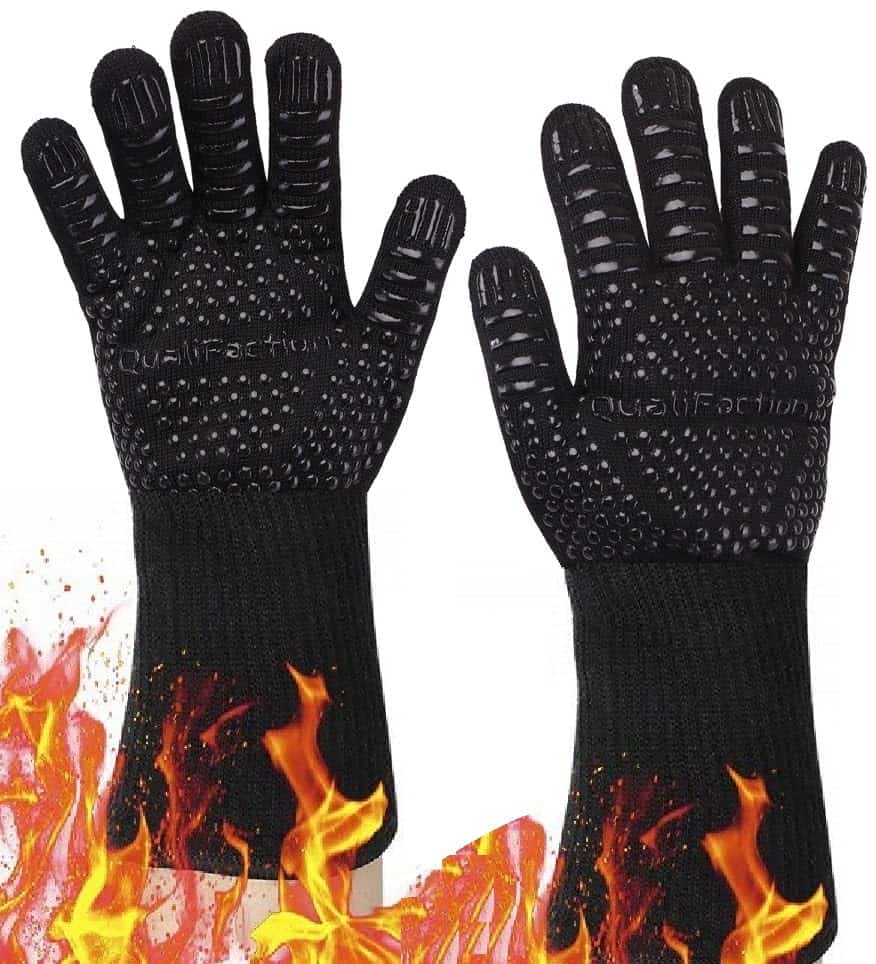 1. Protección definitiva contra el calor: Nuestros guantes para parrilla, accesorios esenciales para fumadores y accesorios para la parrilla, están hechos con materiales premium resistentes al calor capaces de soportar temperaturas de hasta 932 F (500 C). Mantén tus manos seguras durante la parrilla, cocina, horneado y más con estos guantes de BBQ. 2. Uso versátil: Perfecto para parrillas, ahumadores, cocinar, hornear o manejar objetos calientes en la cocina y al aire libre. Úsalos como accesorios de barbacoa o guantes para la parrilla durante las sesiones al aire libre. También son ideales como guantes de cocina para manejar ollas y sartenes calientes, convirtiéndolos en una parte esencial de tus regalos para hombres amantes de la parrilla. 3. Cómodos y flexibles: Diseñados para máxima destreza y comodidad, nuestros guantes resistentes al calor, también conocidos como guantes para parrilla, guantes de horno o guantes para carne, están forrados con algodón suave y cuentan con una superficie de silicona antideslizante para un agarre seguro en superficies calientes y utensilios. Estos guantes para parrilla, resistentes al calor para cocinar y asar a la parrilla, son perfectos tanto para hombres como mujeres. 4. Fáciles de limpiar: Simplemente enjuaga estos guantes de BBQ, también conocidos como guantes Ove o guantes de horno, bajo el agua o mételos en la lavadora para una limpieza fácil. La construcción duradera asegura que estos guantes durarán para innumerables aventuras culinarias, convirtiéndolos en accesorios esenciales para la parrilla BBQ y accesorios para huevo verde. 5. Regalo perfecto: Ya sea para el entusiasta de la parrilla, el cocinero casero ávido o el chef profesional, estos guantes resistentes al calor son el regalo perfecto para cualquier ocasión. ¡Agrégales a tu colección de accesorios para parrilla y accesorios de BBQ hoy! 6. Confiable: Nuestra ingeniería avanzada hizo que estos guantes de cocina fueran resistentes al calor, para que puedas usarlos durante la cocción o la barbacoa sin preocupaciones.