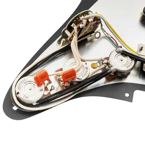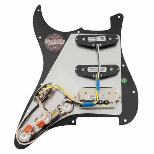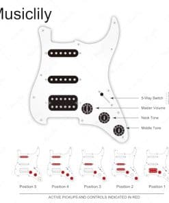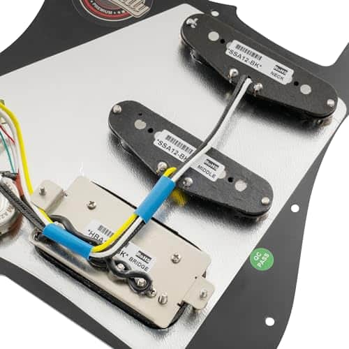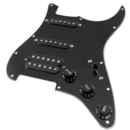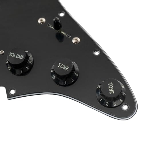 Guarda Golpeado pre-cableado con Alnico 5 y Humbucker Single Coil para Guitarra Eléctrica Strat, 3Ply Negro. Mejora la calidad de tu tono con este producto de alta calidad. Incluye pastillas Artec con imán Alnico 5 para un sonido auténtico y vintage. Diseñado por técnicos experimentados con atención a cada detalle durante el proceso de montaje y prueba. El paquete incluye el guarda golpeado pre-cableado y una guía de usuario con diagrama de cableado profesional para resolver tus problemas de conexión.