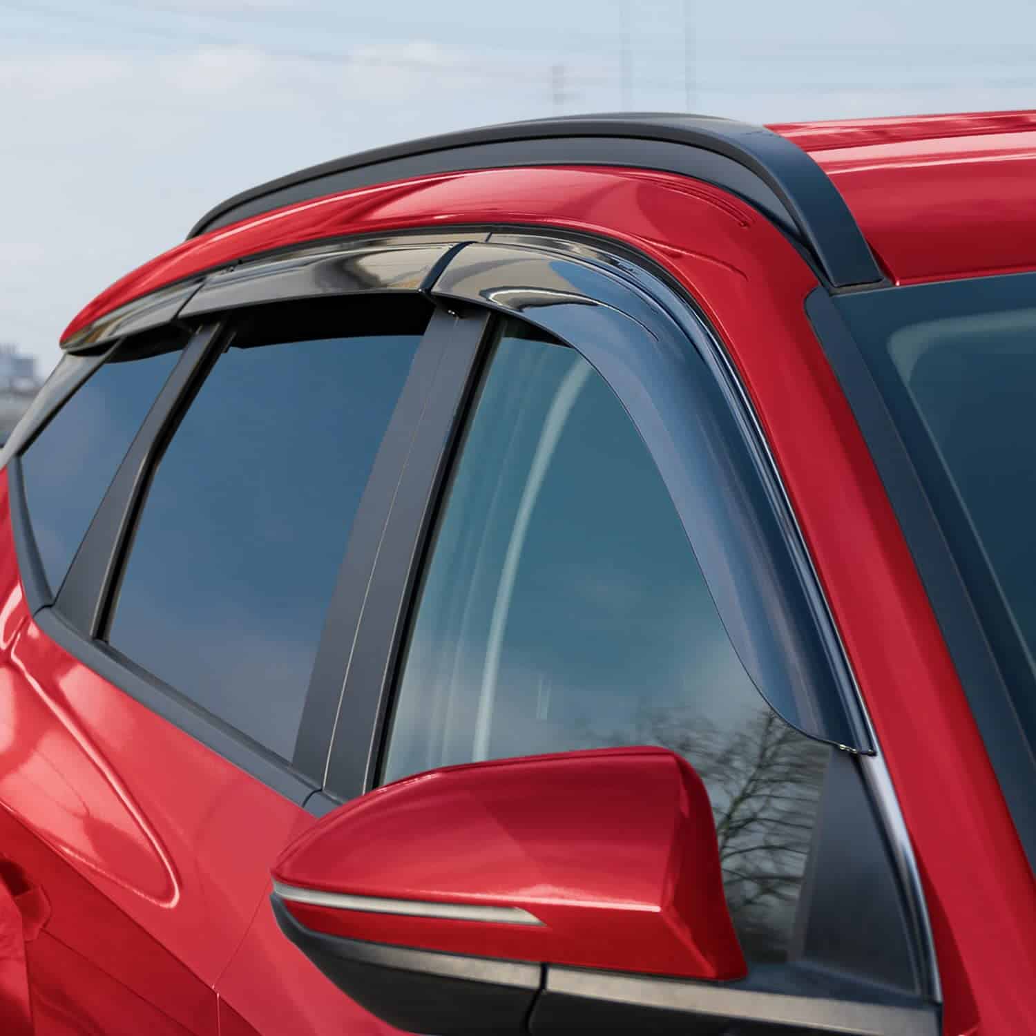 3. Juego de deflectores tamaño completo para ventanas laterales. Este conjunto de 6 piezas incluye protectores de lluvia para pasajeros, conductor y lado trasero que crean un aspecto impecable que te protege de los rayos del sol, las gotas de lluvia y el viento mientras conduces con la ventana abierta.