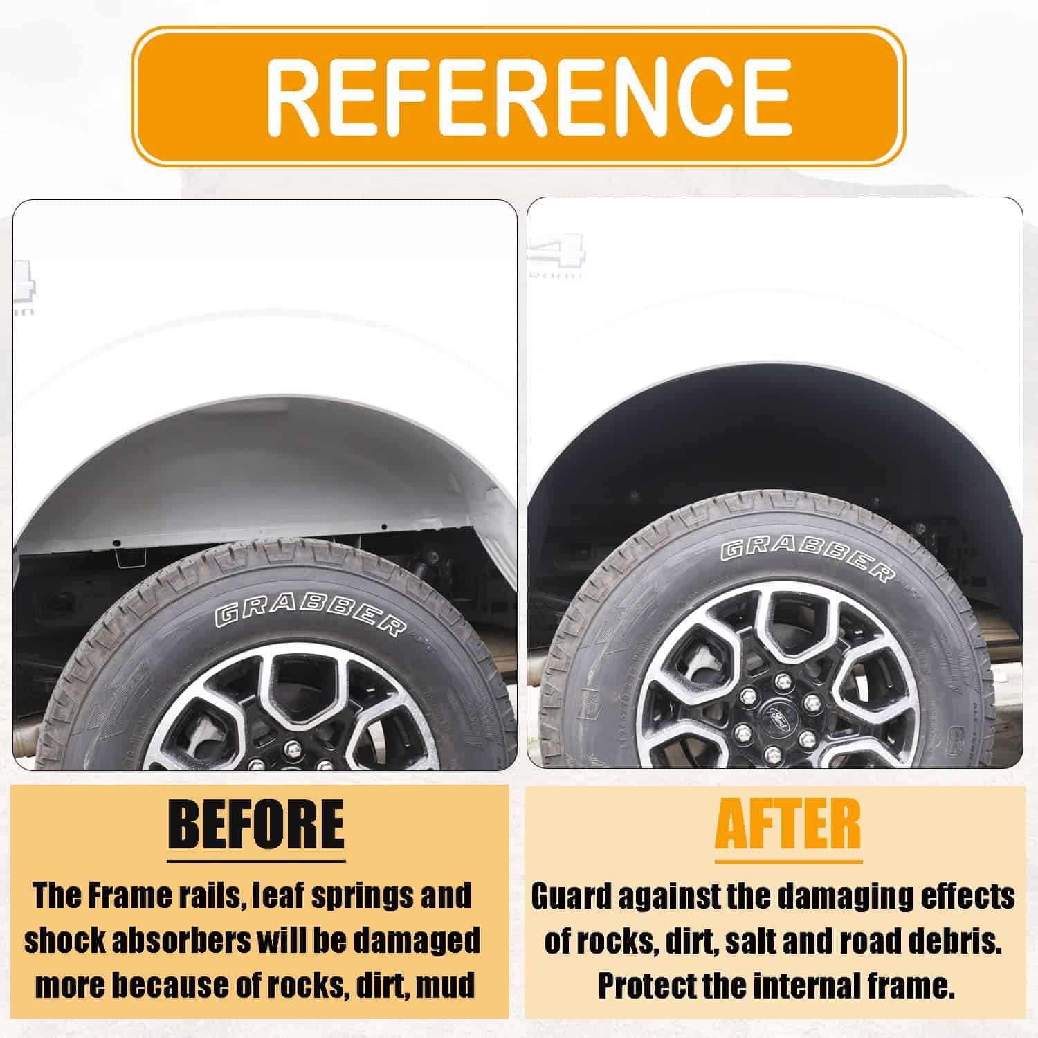 Una bonita adición a tu F150 – Hechos de material plástico duradero, la cobertura es excelente y muy resistente. Los guardabarros adornan el pozo de la rueda, mejoran la vista lateral en un camión de color claro. Y facilitan mucho la limpieza.
