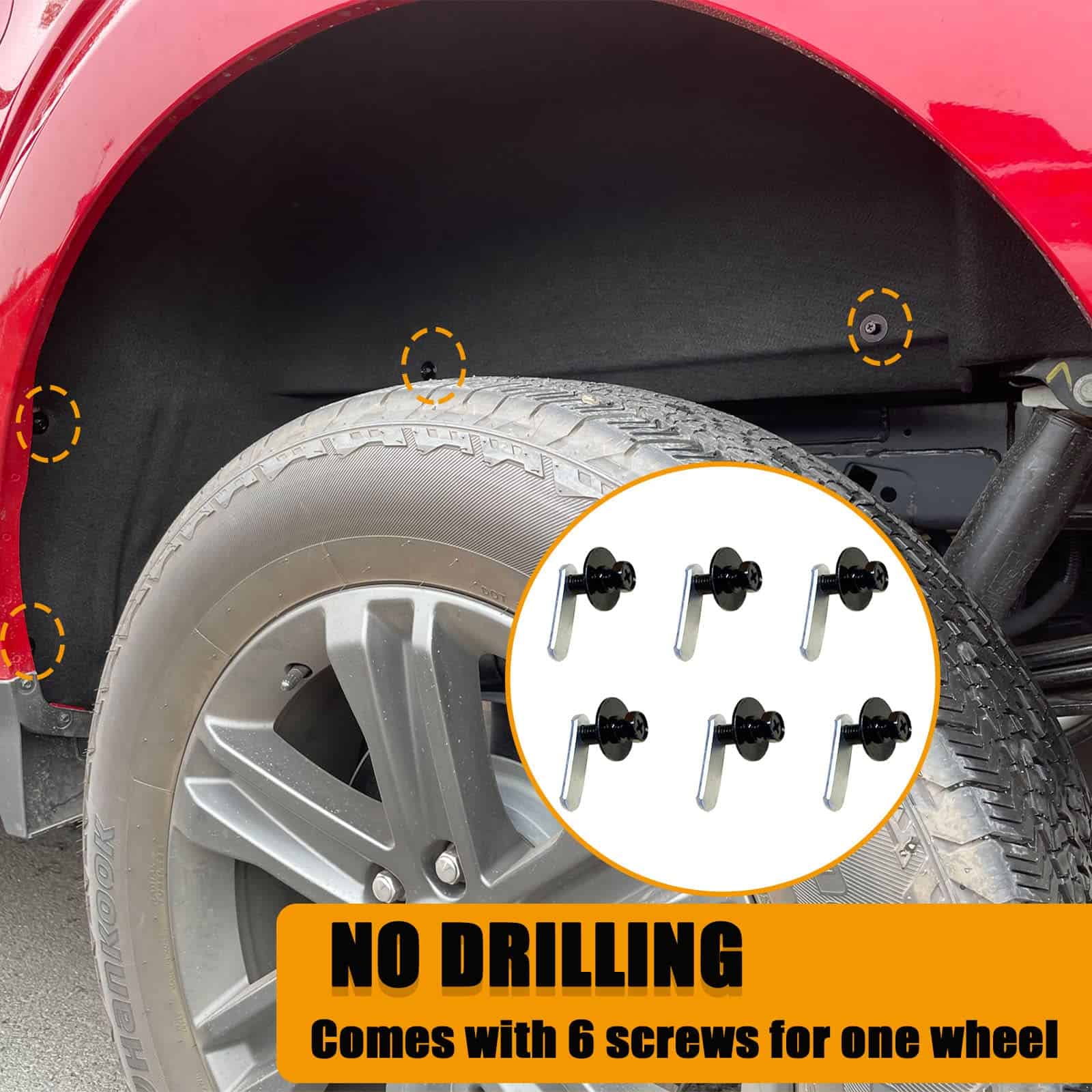 Fácil de instalar – ¡Se atornilla directamente! Son en lo que se atornillan los tornillos para sostener los guardabarros de la rueda en su lugar. ¡Robusto y se adapta perfectamente al perfil del pozo de la rueda! Apenas tomó unos 15 minutos hacer ambos lados. Completan el aspecto del espacio de la rueda de lo contrario vacío.