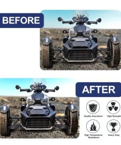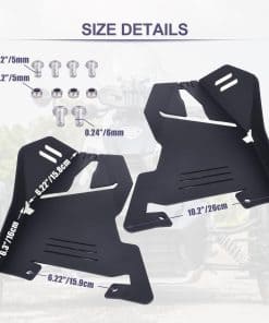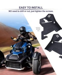 Accesorios de guardabarros delanteros negros para Can Am Ryker, Hutexico Motorcycle Front Una de las mejores formas de proteger tu Can-Am Ryker de los daños externos es instalar guardabarros delanteros de brazo A. Estos guardabarros delanteros aportan una gran protección y un toque personalizado a tu Can Am Ryker. Nuestros protectores de brazo A están diseñados para adaptarse a todos los modelos de Can Am Ryker, incluidos Ryker 900 y Ryker 600, reemplazando la pieza OEM número 219400863. El paquete incluye 2 piezas de guardabarros delanteros, izquierdo y derecho, junto con el juego de pernos necesario para la instalación. Se incluyen instrucciones de instalación detalladas para que la instalación sea rápida y sencilla, sin necesidad de modificaciones. Los protectores de brazo A para Ryker están fabricados con aluminio billet de alta resistencia y durabilidad para asegurar una protección duradera. El anodizado negro proporciona una capa resistente a la intemperie y resistente a los rayos UV para una apariencia duradera y de calidad. Los protectores de brazo A también añaden un toque de estilo personalizado a tu motocicleta. Características como las rayas con diseño hueco y los agujeros cortados con láser no solo sirven para la estética, sino que también ayudan a mantener el guardabarros seco filtrando el agua estancada. La instalación de los guardabarros delanteros del brazo A es sencilla y rápida, sin necesidad de taladrar o cortar. Con el hardware de montaje incluido y las instrucciones detalladas, podrás completar la instalación en pocos minutos. Los guardabarros delanteros se pueden limpiar fácilmente con agua o un paño húmedo, y se secan rápidamente para un mantenimiento sin complicaciones. Protege tu Can Am Ryker y mejora su aspecto con estos guardabarros delanteros de brazo A de alta calidad.
