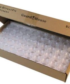 Los porta monedas redondos de ajuste directo de Guardhouse están hechos de un polímero acrílico de estireno virgen. Este material de alta calidad garantiza claridad cristalina a largo plazo. El interior de la cápsula redonda de ajuste directo mantendrá una moneda de centavo firmemente en una cámara sellada, pero también está diseñado para que puedas retirar el contenido si es necesario. Las dimensiones exteriores se miden según los estándares de la industria para cajas y porta monedas de monedas.