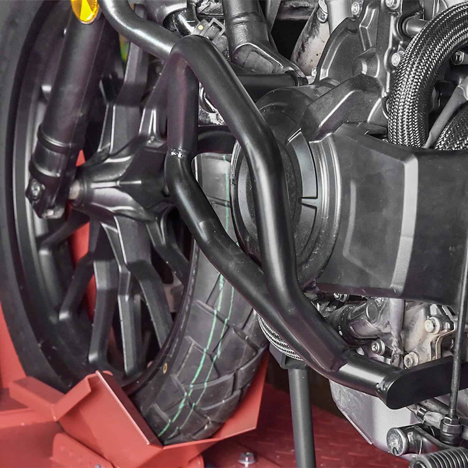 3. PROTECCIÓN POTENTE – Cuando la motocicleta cae, el parachoques desempeña un papel amortiguador para proteger la motocicleta y reducir el daño al cuerpo. Además, debido al soporte lateral del parachoques, crea un espacio seguro para el conductor para evitar daños al cuerpo humano.