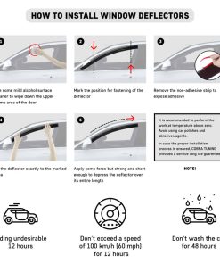Los deflectores de visera de viento están fuertemente pegados a las ventanas con la ayuda de cinta adhesiva de doble cara que te permite conducir fuera de la carretera sin preocupaciones.