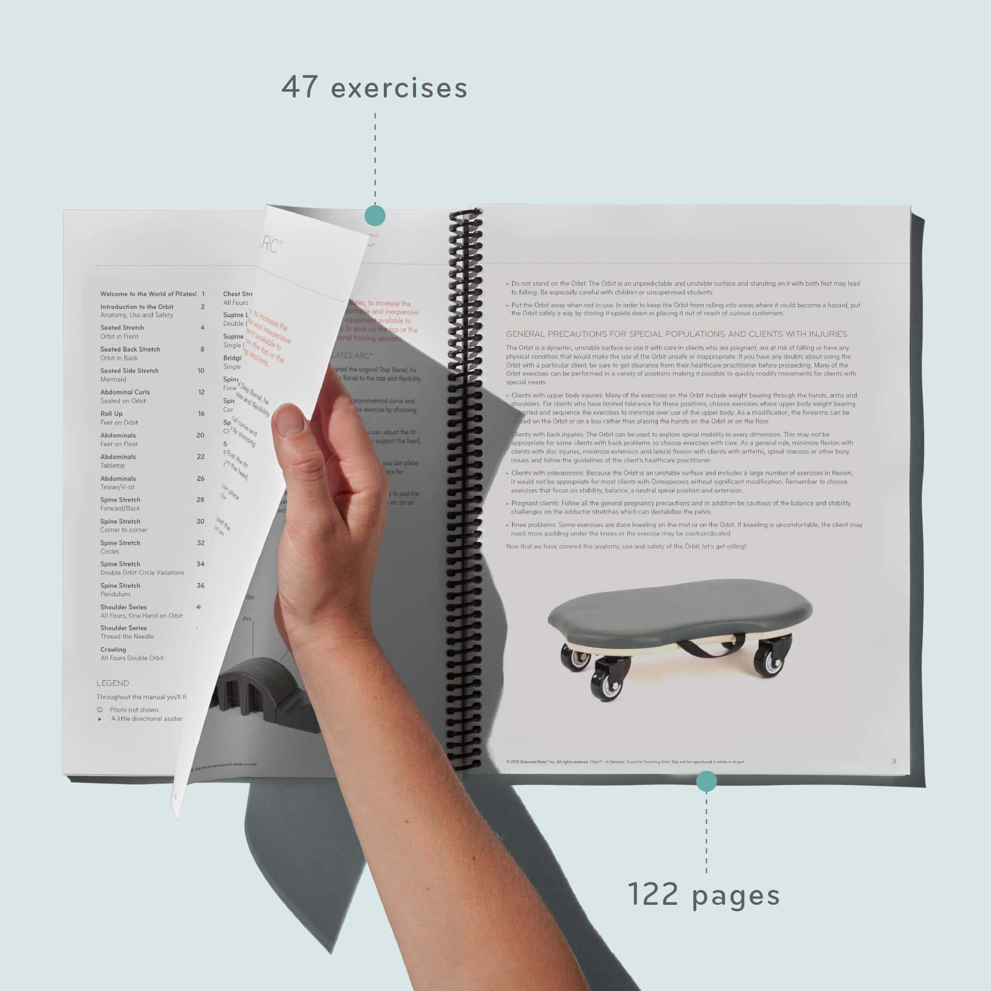 Sumérgete en el arte del Pilates con la Guía del Balanced Body Orbit, un recurso definitivo adaptado a tu Balanced Body Orbit. Este libro completo desvela los secretos de tu equipo de Pilates del Balanced Body, ofreciendo instrucciones paso a paso para un uso óptimo. Cuenta con 122 páginas con 47 ejercicios de Orbit e imágenes a color que te guían a través de cada movimiento. Ya seas un principiante o un practicante experimentado, este manual te ayudará a construir tu conocimiento de Pilates y sacar el máximo provecho de tus entrenamientos en el suelo.