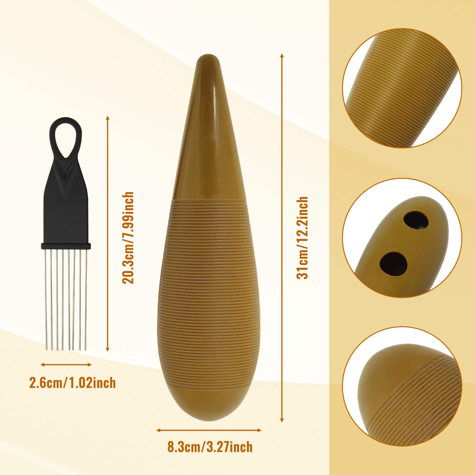– Tamaño del Guiro: aprox. 31×8.3cm/12.2×3.27 pulgadas
