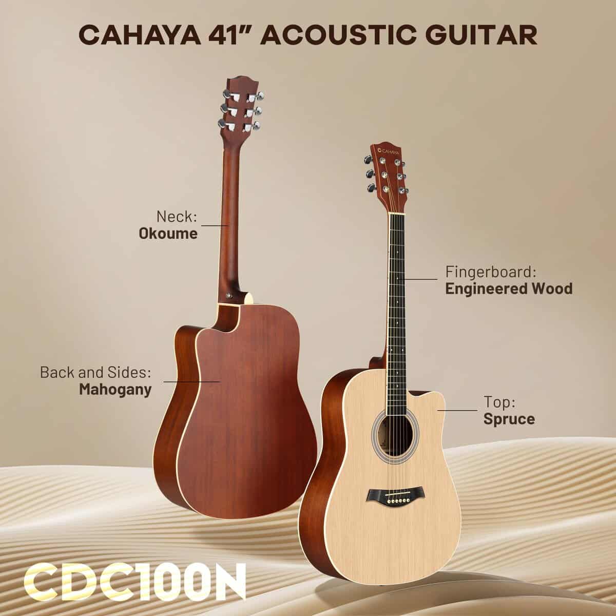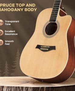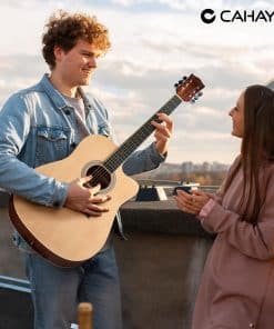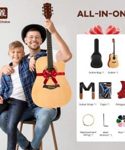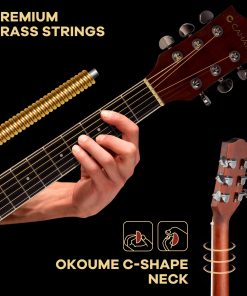 Guitarra acústica de tamaño completo para principiantes, diseñada con una longitud de 41 pulgadas y un mástil ergonómico en forma de C que proporciona una experiencia de juego cómoda. Incluso durante prácticas prolongadas, minimiza el cansancio. La palanca de ajuste de 2 vías permite realizar ajustes fáciles, ayudando a adaptarse rápidamente.