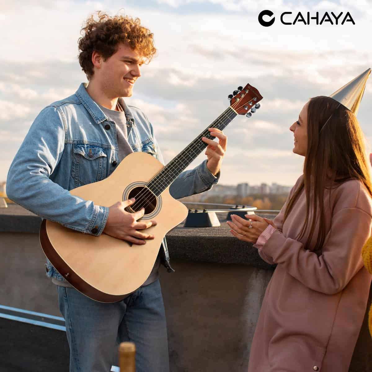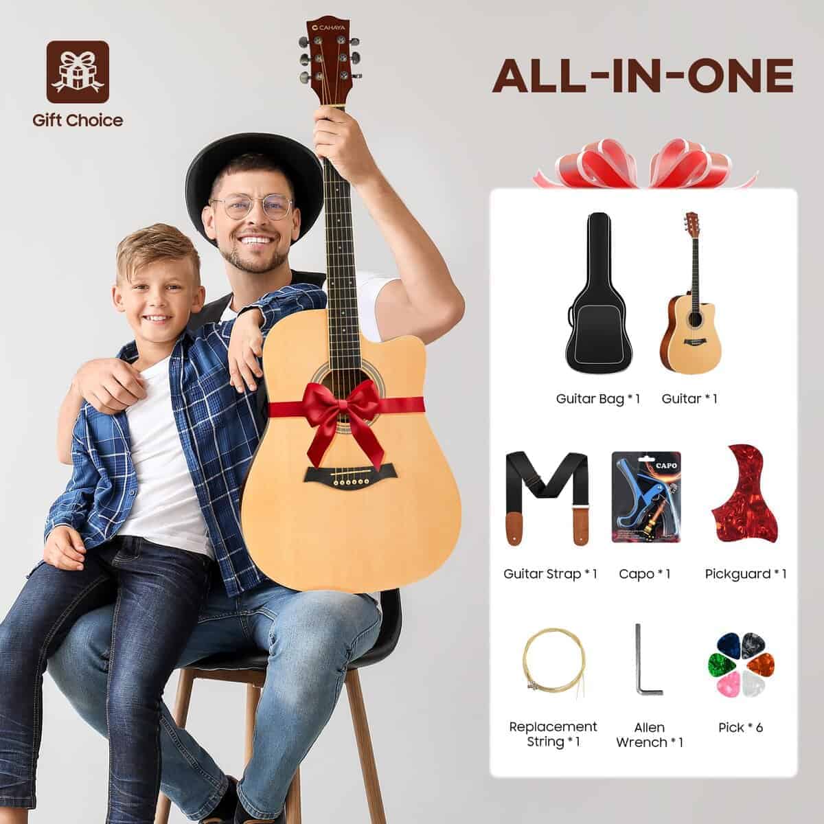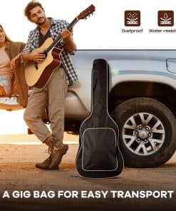 Equipada con una funda premium de 0.2 pulgadas de grosor, la guitarra acústica está bien protegida durante el transporte, asegurando la seguridad y evitando daños. El set acústico también incluye cuerdas adicionales, 6 púas, protectores autoadhesivos para púas, una correa para el hombro ajustable y una llave allen, proporcionando todos los elementos para que los principiantes inicien su viaje musical de inmediato.