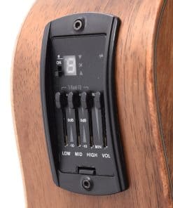 La GS Mini-e Koa lleva el vibrante sonido y la belleza orgánica del Koa hawaiano a la popular guitarra acústica de escala reducida de Taylor. Las dimensiones compactas de la GS Mini la convierten en una gran elección para músicos que llevan su música de un lado a otro, y con una tapa de koa sólida, este modelo ofrece un sonido rico y audaz que destaca por encima de su peso para una guitarra más pequeña. El pickup ES-B integrado ofrece un tono amplificado claro y natural e incluye un afinador digital con una pantalla LED fácil de leer. La GS Mini-e Koa se envía con un estuche de estructura. Una GS reducida que no es en absoluto pequeña. El koa estratificado bellamente figurado y duradero ofrece atractivos visuales y tonos a un precio accesible. La belleza visual de una tapa de koa es instantáneamente inspiradora, mientras que sus recompensas sonoras se van revelando con el tiempo, a medida que sonidos cálidos y dulces emergen gradualmente. Este combo de pickup/preamp incluye un afinador cromático digital integrado. Aspectos destacados: Cuerpo Cuello Pala Otros Aspectos destacados Longitud de escala 23-1/2″ Golpeador Ninguno Clavijeros de afinación Taylor Chrome Cuerdas Fósforo Bronce Medium Ancho del cuerpo 14 3/8″ Cejuela y selleta Nubone Nut, Micarta Saddle Cubierta de varilla de ajuste Plástico negro Número de trastes 20 Estuche Estuche Estructurado Longitud del cuerpo 17 5/8″ Profundidad del cuerpo 4 7/16″ Bordeado del cuerpo Ninguno Configuración de la parte trasera Koa estratificado Tamaño de rosetón Tres Anillos Acabado de la parte trasera/lateral Barniz Respaldo de madera Ninguno Tinte/sunburst Ninguno Apoyabrazos No Acabado superior Barniz Acabado de la correa de soporte frontal Ninguno Incrustación del puente Ninguno Encuadernación de apoyabrazos Ninguno Material del rosetón Plástico Cuna Ninguna Cuello Ancho del cuello 1-11/16″ Encuadernado del diapasón/borde Ninguno Tipo de unión del mástil Mástil Taylor Madera del diapasón Ébano crelicam de África Occidental Longitud del talón 3″ Incrustaciones del diapasón 4mm Dot Italian Acrylic Encuadernado del talón Negro Acabado del cuello Barniz Pala Tipo de pala Estándar Tapa de pala Cupofera Logo de la pala Impreso en la tapa de la pala Encuadernación de la pala Ninguna Incrustación de la pala Ninguna Otros Clavijas del puente Negro Extensión de diapasón Ninguno Botones Cromo Adorno del borde Ninguno