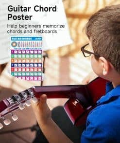 5. Completo Kit de Guitarra para Principiantes: Todo lo necesario para empezar está incluido, solo desempaca y toca. El set incluye la guitarra acústica Moukey 36″, póster de acordes, funda acolchada de 3mm, afinador, correa, capo, cuerdas y púas. Un regalo decente para tus hijos, queridos, amigos y familiares.