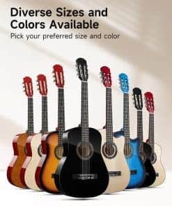 La guitarra acústica Moukey 38 es perfecta para principiantes de todas las edades, desde niños hasta adultos, gracias a su comodidad y facilidad de aprendizaje. Con un cuerpo de madera de calidad, mástil suave de Okoume y diapasón que no raya, esta guitarra ofrece un tono rico y cálido que es adecuado para cualquier estilo de música. Las cuerdas de nylon suaves son fáciles de presionar, lo que evita el dolor en los dedos y el daño en el puente de la guitarra. Además, las 6 clavijas de afinación garantizan una afinación precisa y duradera. Con un tamaño portátil, la guitarra Moukey 38 es ideal para viajes, conciertos o clases. El kit completo para principiantes incluye la guitarra acústica, póster de acordes, estuche, afinador, correa, capo, cuerdas y púas, lo que lo convierte en un regalo perfecto para tus seres queridos.