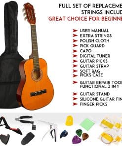1. Guitarra Clásica para Principiantes: Dale a tu hijo un sueño musical, permite que tu hijo complete el sueño de la guitarra y comience con una guitarra que le pertenezca. Esta forma y tamaño son los más apropiados para niños. Formas novedosas y únicas. Los niños pueden aprender fácilmente la guitarra. El sonido de esta guitarra es excelente, para que tu hijo sienta la diversión de la música, estará muy feliz de tener esta guitarra.