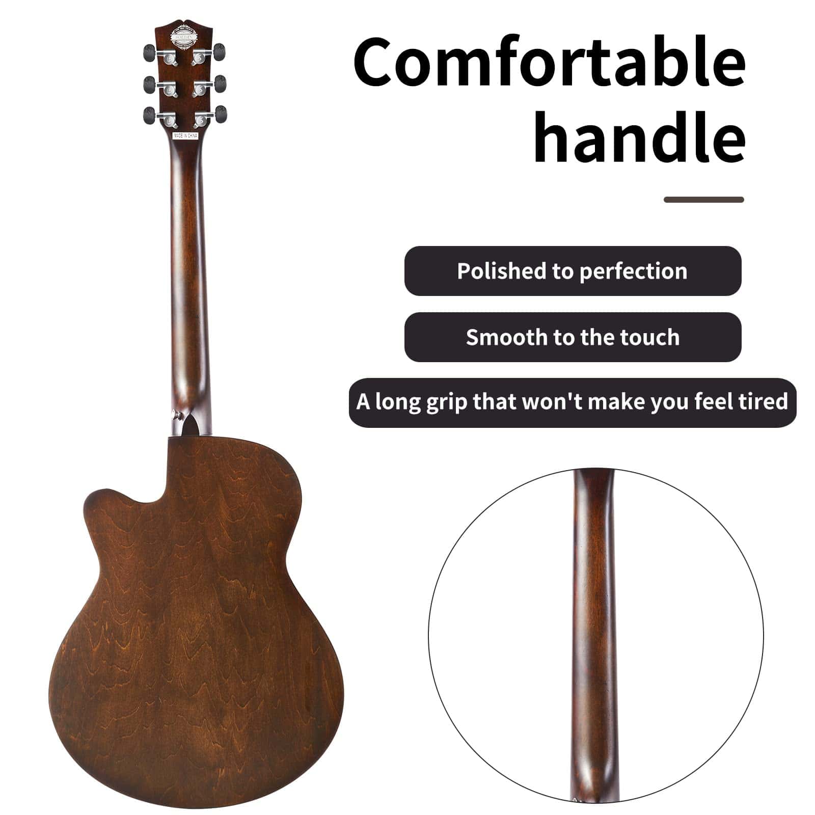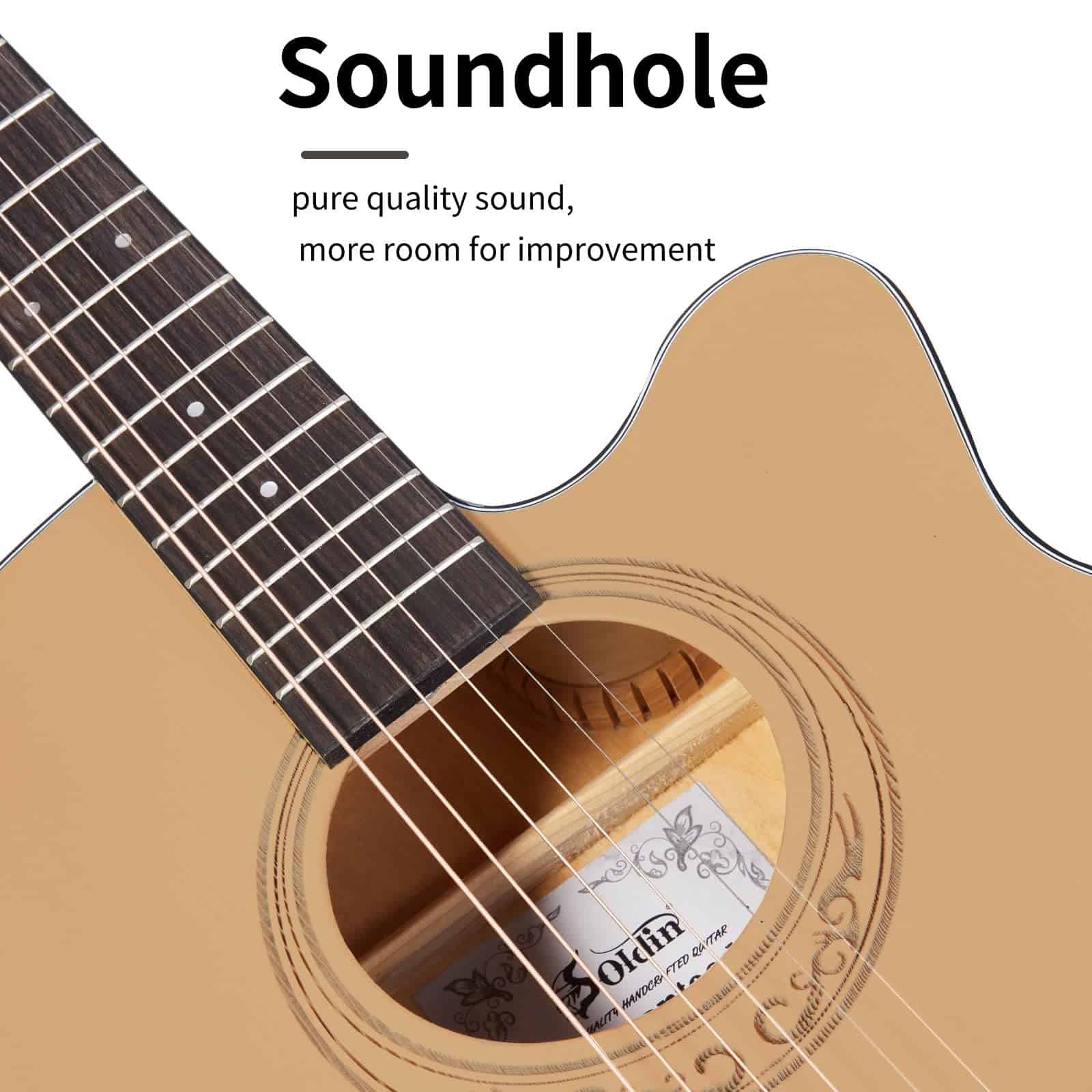 5. LOOK EXQUISITO – La guitarra Soldin tiene un aspecto simple y elegante, no complicado, pero es profundamente amada por el público. Hemos mejorado la calidad de las guitarras a los estándares más altos, lo que hace que la gente la ame. Tener una guitarra Soldin hará que tu vida sea más interesante y divertida.