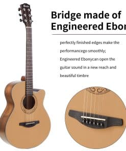 1. MATERIALES DE ALTA CALIDAD – Tapa sólida premium de abeto con orificio de sonido láser, fondo y lados de tilo con refuerzo en X que te brindan un sonido más rico y brillante.