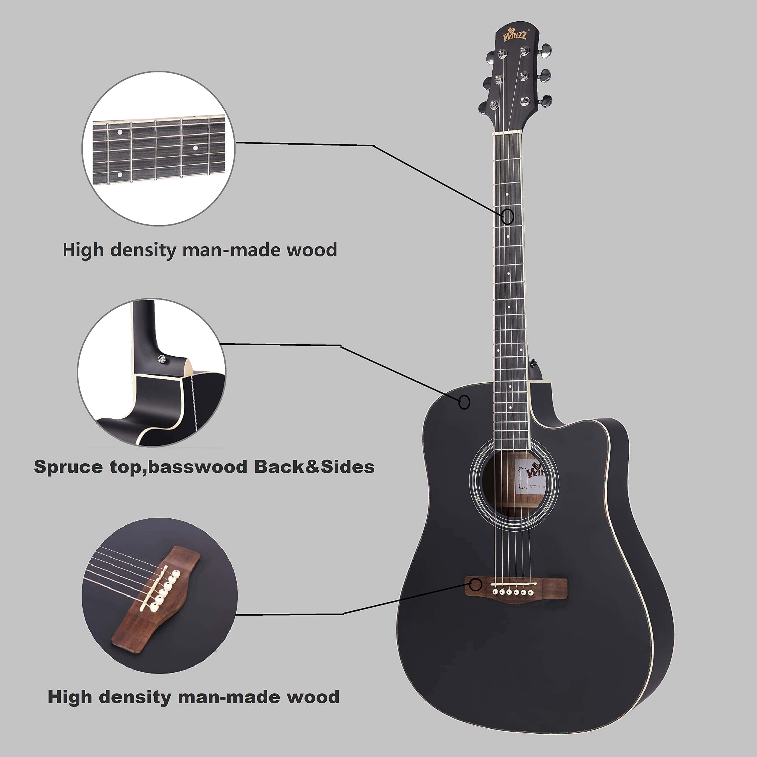 Guitarra Acústica WINZZ AF168C Tamaño Completo con Cutaway