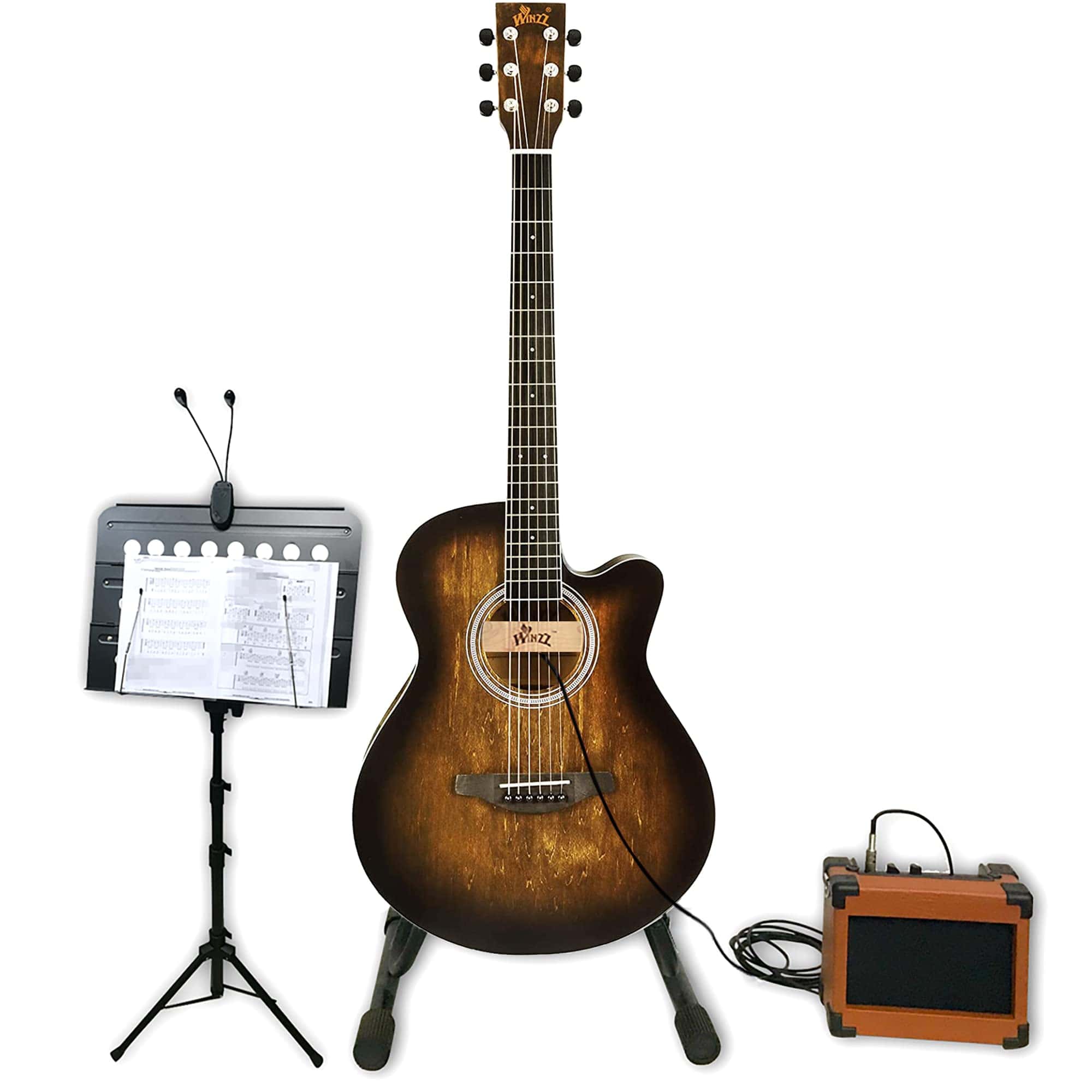 La Guitarra Acústica WINZZ HAND RUBBED Series es ideal para principiantes que buscan comenzar su viaje musical. Con un tamaño de 40 pulgadas y un diseño cutaway, esta guitarra ofrece comodidad y facilidad de acceso a las notas más altas. El bundle incluye un estuche acolchado para proteger la guitarra cuando no esté en uso, un soporte para exhibirla, un afinador para mantenerla en tono, un pickup para amplificar su sonido, una correa para tocar con comodidad y picks para empezar a rasguear. El color Marrón Sunburst le da un aspecto elegante y llamativo. ¡Comienza tu aventura musical con la Guitarra Acústica WINZZ HAND RUBBED Series!