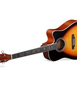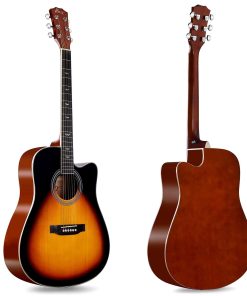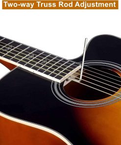 Kit completo para principiantes de guitarra acústica que incluye casi todos los accesorios necesarios para comenzar a aprender a tocar. La guitarra cuenta con un diapasón y puente de madera de alta densidad que ofrecen una construcción resistente y un tacto suave, junto con un clavijero de fundición cromado para mantener las cuerdas afinadas y una varilla de doble acción para el ajuste fino del mástil. La tapa de abeto y la estructura X de refuerzo brindan un tono brillante y cálido con excelente extensión y respuesta en todas las frecuencias. Además, el diseño exquisito con un acabado natural y encuadernaciones decorativas hacen que esta guitarra sea una obra de arte. En resumen, esta guitarra acústica dreadnought es la mejor opción para aquellos que buscan calidad, asequibilidad y atractivo en un solo instrumento para principiantes.