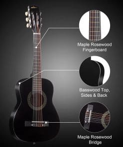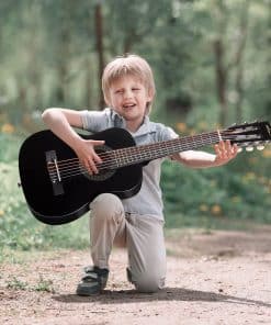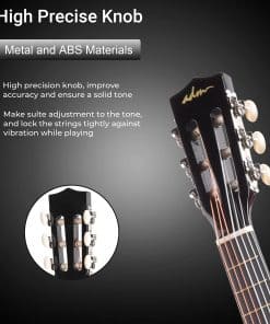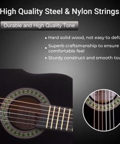Sounds so much better than your cheap beginner guitars, and very close to your high end guitars! Cuenta con un dorso arqueado para dar mayor sustain y un sonido más pleno. El kit de inicio definitivo para un músico incipiente, esta guitarra para diestros viene completa con estuche, púas, correa para el hombro, afinador digital (batería no incluida), cuerdas de repuesto adicionales y un mes de lecciones gratuitas; El tamaño pequeño de 30 pulgadas mejora la capacidad de juego para principiantes y estudiantes, fácil de transportar. Perfecto para estudiantes principiantes o un jugador joven, comenzar con este hermoso instrumento tendrá una buena posibilidad de amar la guitarra. Es un buen instrumento de inicio y vale la pena probarlo para ver si te interesa. Para evitar daños durante el transporte, la guitarra aún no ha sido afinada. Casi todas las guitarras estarán desafinadas al principio porque la ‘nueva cuerda’ está un poco apretada. Para un instrumento nuevo, tomará tiempo para que las cuerdas, así como la madera, se adapten a la fuerza de tracción. Por lo tanto, volver a afinar con más frecuencia después de haber obtenido la guitarra. Se mantendrá afinada por más tiempo después de algunas afinaciones.