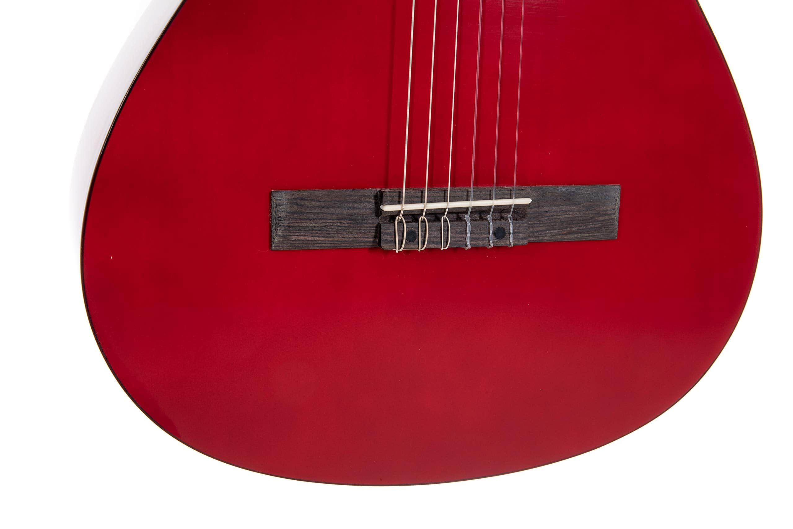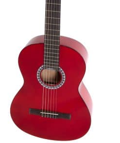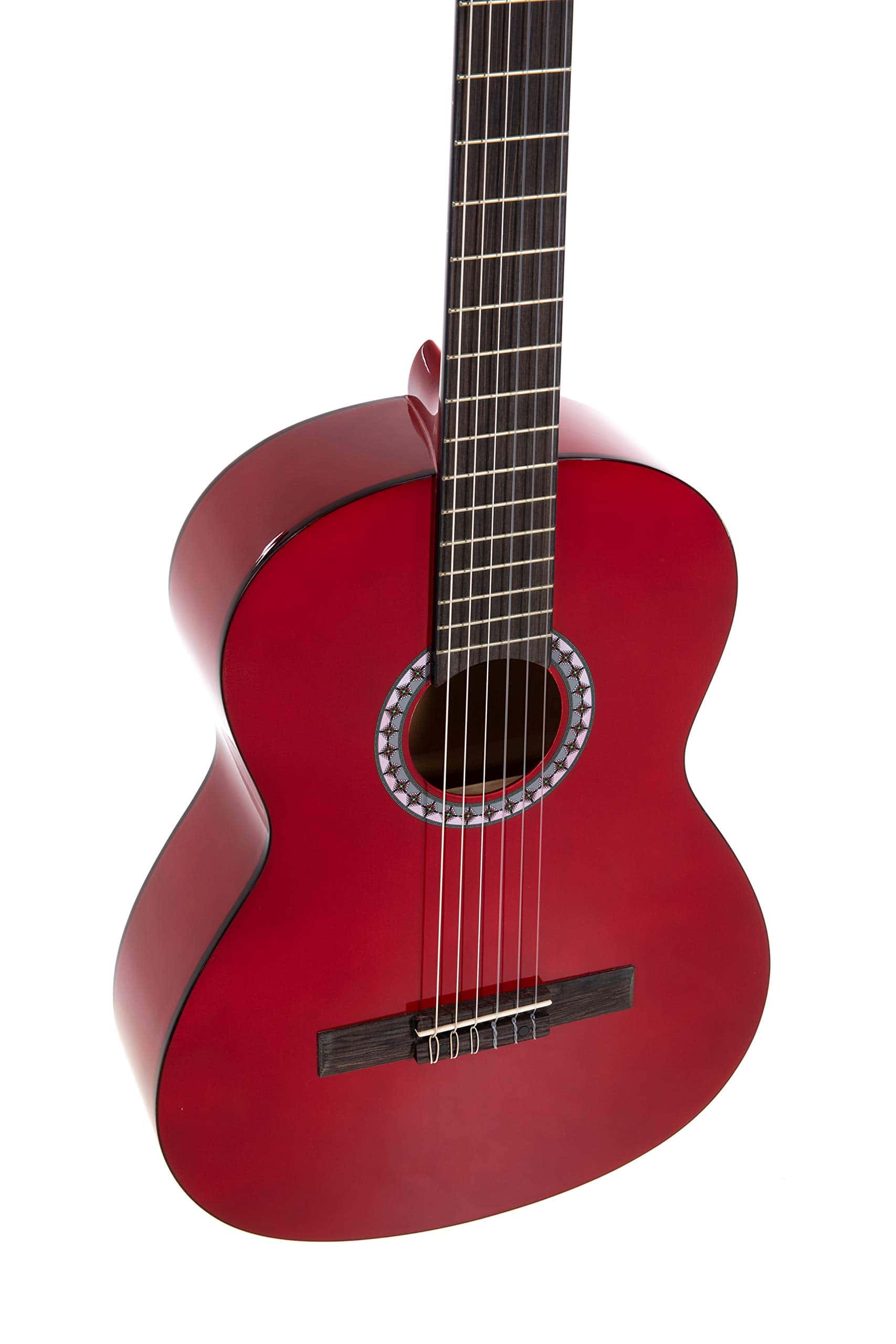 Guitarra Clásica Eléctroacústica GEWA BASIC 4/4 – Guitarra clásica – ideal para niños mayores de 12 años – trastes de níquel-plata – clavijas cromadas – acabado mate – fabricada en madera de lima y pakka – longitud de escala: 650 mm – ancho de cejuela: 52 mm – color: rojo transparente