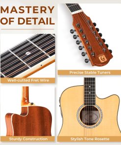 Guitarra de 12 Cuerdas Vangoa, Guitarra Acústica Eléctrica