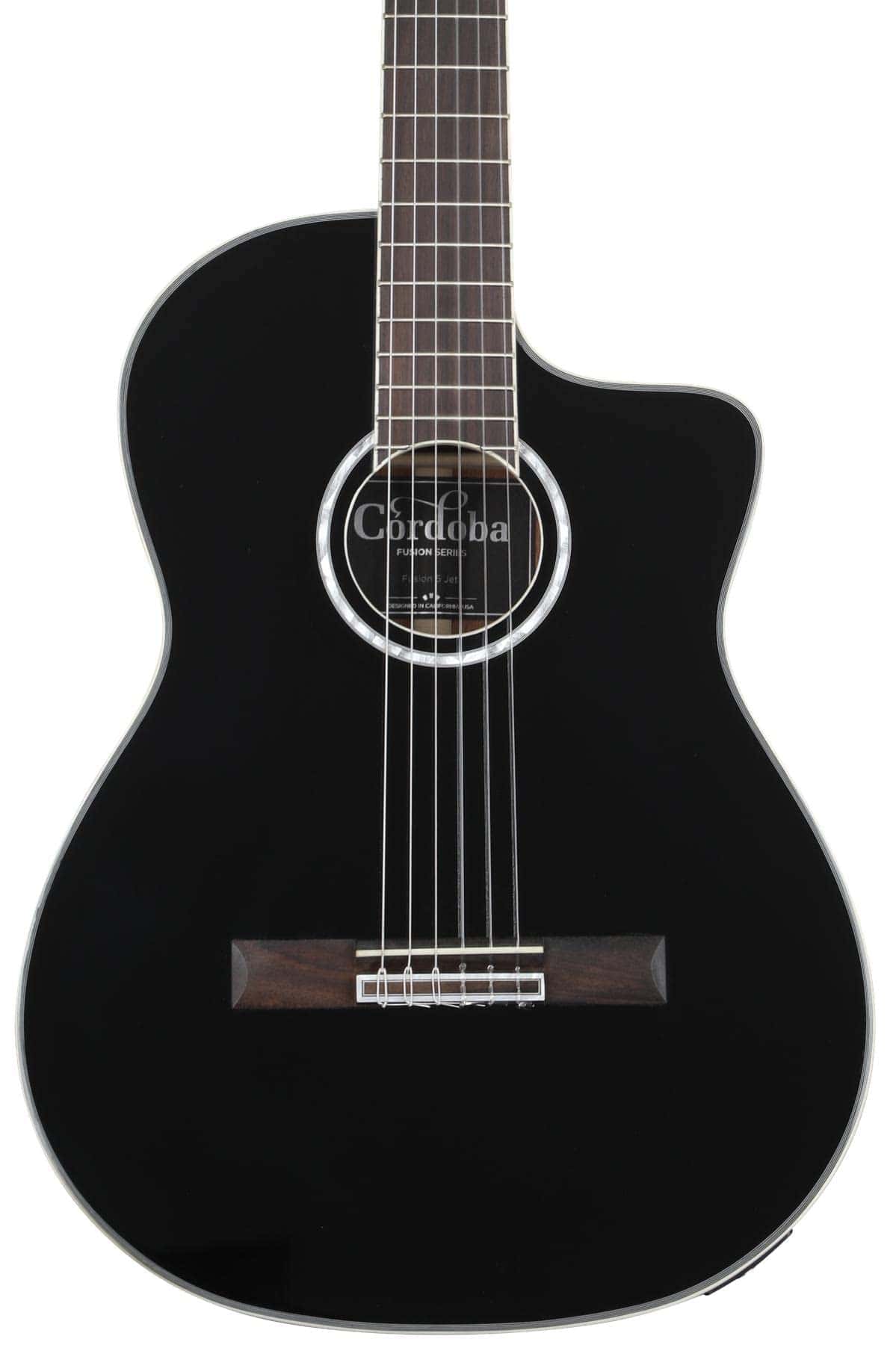 Diseño clásico con una sensación de guitarra de cuerdas de acero Los guitarristas que deseen pasar de una guitarra de cuerdas de acero a un instrumento de cuerdas de nylon encontrarán mucho que amar en la guitarra acústica Cordoba Fusion 5 Jet. Este instrumento de tamaño reducido ha sido diseñado para ofrecer una increíble comodidad a los músicos emergentes y a aquellos con manos más pequeñas, como los músicos más jóvenes. La Fusion 5 Jet cuenta con una tapa de abeto sólido con fondo y costados de caoba para una combinación estelar de agudos nítidos, medios equilibrados y graves ricos. El mástil de caoba con diapasón de pau ferro ofrece una increíble facilidad de ejecución y respuesta suave, y el corte profundo te proporciona un fácil acceso a esas notas más difíciles de alcanzar en el mástil. Y cuando estás listo para conectar, el sistema de pastilla Fishman Sonitone ofrece un magnífico tono acústico amplificado. Pastillas Fishman Sonitone: un tono en el que puedes confiar El sistema de pastilla Fishman Sonitone dentro de la Fusion 5 Jet incluye un piezo bajo la selleta que ofrece