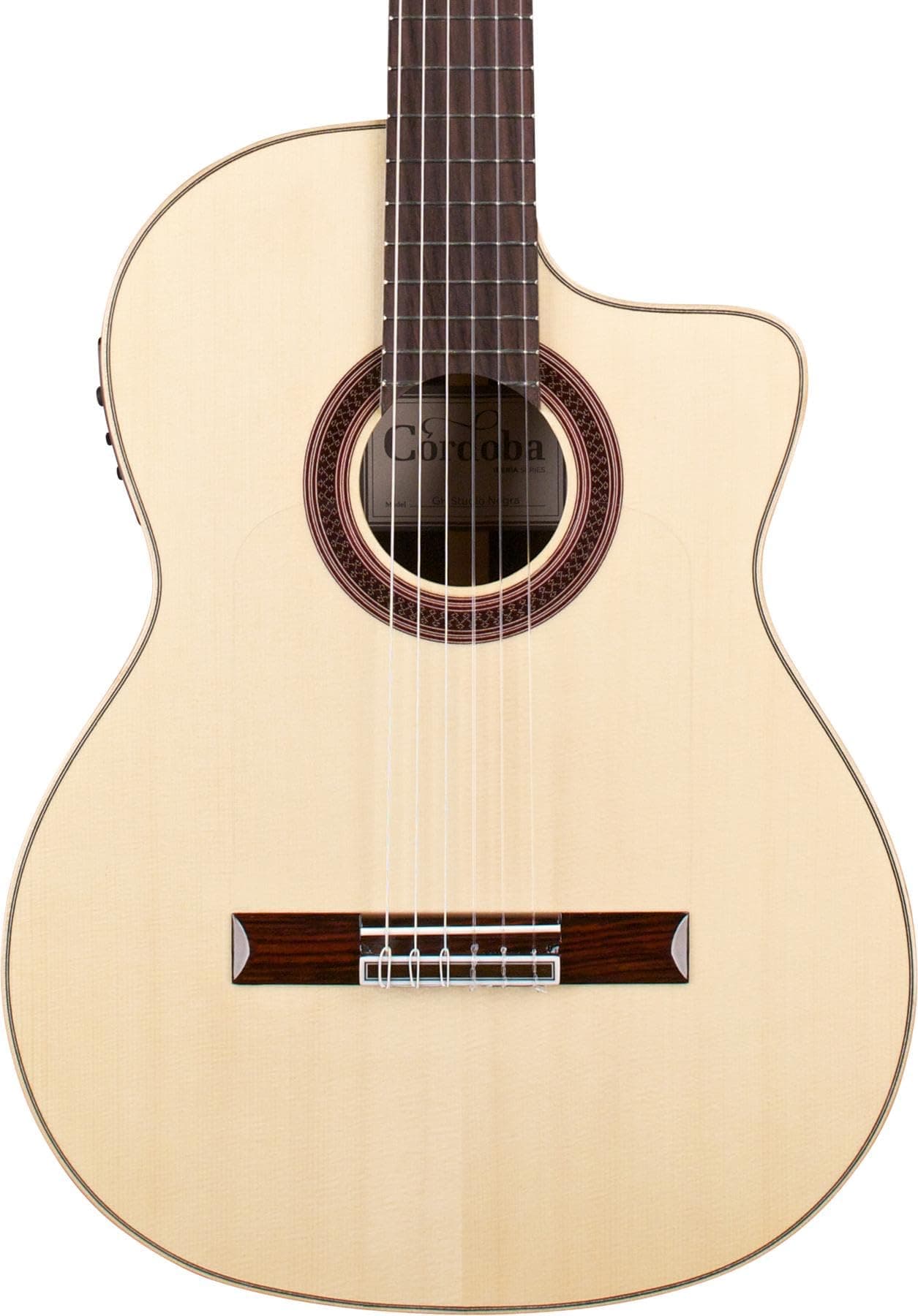 Construida con una parte superior sólida de abeto europeo, dorso y costados de palisandro, corte suave y preamplificador Fishman Presys Blend, la GK Studio Negra es el instrumento ideal para conciertos y un éxito de ventas de Córdoba. Hecha para el escenario, la GK Studio Negra se construye con una profundidad de cuerpo, cuello y ancho de tuerca ligeramente más delgados que una guitarra española tradicional. El cuello está diseñado para tener poco o ningún alivio, ofreciendo una acción baja para mayor comodidad y rapidez de ejecución. Los guitarristas flamencos eligen este modelo por un tono más grave y robusto en contraste con el sonido brillante y vibrante de las guitarras flamencas blancas. Sin embargo, cualquier guitarrista buscando un nuevo tono se sentirá como en casa. Al igual que cada guitarra de Córdoba, este modelo tiene una varilla de doble truss integrada en el mástil. Otras características premium incluyen un acabado de alto brillo, placa de golpe estilo flamenco transparente y cuerdas Savarez.