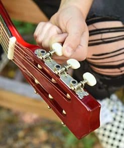 DURABILIDAD: Hecha completamente de madera. No se abollará ni agrietará cuando la dejen caer los niños. SONIDOS: Sintoniza bien y da sonidos reales. Excelente para principiantes que están aprendiendo a tocar la guitarra. REGALO: Haz feliz a un ser querido que está tratando de aprender a tocar la guitarra.