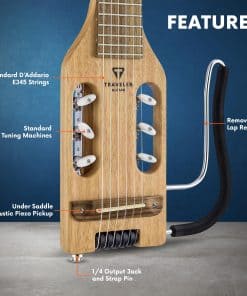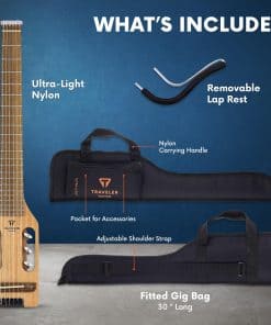 Una guitarra de cuerdas de nylon compacta que puedes llevar a cualquier lugar. El nylon ultra ligero es la guitarra acústica/eléctrica de viaje con cuerdas de nylon a tamaño completo más pequeña y ligera jamás fabricada. Nuestro exclusivo sistema de afinación In-Body utiliza máquinas de afinación estándar reubicadas en el cuerpo para crear una guitarra que tiene un mástil a tamaño completo, pero que es sustancialmente más corta que las guitarras de tamaño completo. La falta de un clavijero y un cuerpo pequeño y ergonómico permiten que la guitarra sea un 20% más ligera y un 29% más corta que una guitarra clásica de tamaño completo, todo mientras conserva la misma experiencia de juego de escala completa a la que estás acostumbrado. Completa con una pastilla acústica piezo de Traveler y una salida estándar de 1/4 de pulgada, puedes enchufar esta guitarra directamente en tu amplificador o dispositivo de grabación favorito. La guitarra pesa menos de tres libras y mide solo 28 pulgadas, por lo que puede ir a donde quieras. El reposapiés se puede quitar para guardar y transportar, lo que permite que la guitarra quepa fácilmente en un compartimento superior de avión en la funda de transporte incluida. La Traveler Guitar ultra-ligera de nylon es la solución perfecta para los músicos viajeros que no están dispuestos a comprometer la longitud de la escala, pero que aún buscan la solución más pequeña y ligera disponible. Desde el fabricante: Una guitarra de cuerdas de nylon compacta que puedes llevar a cualquier lugar. La Ultra-Light Nylon es la guitarra acústica/eléctrica de viaje con cuerdas de nylon a tamaño completo más pequeña y ligera jamás fabricada. Nuestro exclusivo sistema de afinación In-Body utiliza máquinas de afinación estándar reubicadas en el cuerpo para crear una guitarra que tiene un mástil a tamaño completo, pero que es sustancialmente más corta que las guitarras de tamaño completo. La falta de un clavijero y un cuerpo pequeño y ergonómico permiten que la guitarra sea un 20% más ligera y un 29% más corta que una guitarra clásica de tamaño completo, todo mientras conserva la misma experiencia de juego de escala completa a la que estás acostumbrado. Completa con una pastilla acústica piezo de Traveler y una salida estándar de 1/4 de pulgada, puedes enchufar esta guitarra directamente en tu amplificador o dispositivo de grabación favorito. La guitarra pesa menos de tres libras y mide solo 28 pulgadas, por lo que puede ir a donde quieras. El reposapiés se puede quitar para guardar y transportar, lo que permite que la guitarra quepa fácilmente en un compartimento superior de avión en la funda de transporte incluida. La Traveler Guitar Ultra-Light Nylon es la solución perfecta para los músicos viajeros que no están dispuestos a comprometer la longitud de la escala, pero que aún buscan la solución más pequeña y ligera disponible.