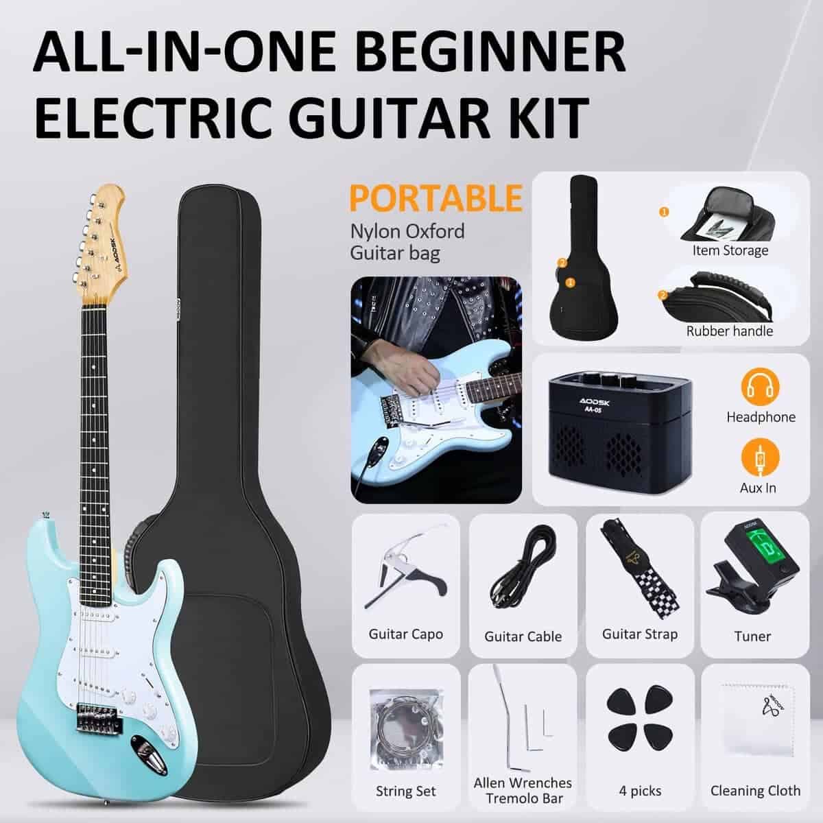 ¡Empieza a tocar la guitarra eléctrica con este completo kit para principiantes! La guitarra de 39 pulgadas cuenta con un cuerpo sólido de tamaño completo y una pastilla SSS que proporciona un sonido nítido. Este kit incluye un amplificador, afinador digital, cuatro púas, barra de trémolo, correa y una funda para guitarra para que puedas transportar tu instrumento de forma segura. Perfecto para aquellos que están comenzando su viaje musical. ¡Hazte con este kit hoy y comienza a rockear!