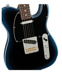 La Telecaster American Professional II es una elección popular para músicos que buscan una guitarra con una sensación cómoda y fácil acceso al registro superior. Enfocada en brindar comodidad, la tele cuenta con un talón de mástil redondeado y una placa de mástil biselada que mejoran el acceso al registro superior para hacer los solos más fáciles y cómodos. El perfil de mástil Deep C ofrece una sensación natural que está hecha para acordes y tocar notas individuales. Las nuevas pastillas V-Mod II Telecaster single-coil proporcionan tonos articulados con un sonido parecido a una campana y calidez. Una característica de diseño amigable para actuaciones agrega un tono más gordo que no se encuentra típicamente en una Telecaster. Ubicado en el control de volumen, el interruptor push-push activa el modo serie en la posición dos para utilizar ambas pastillas y crear el tono deseado. La Telecaster American Professional II está diseñada para satisfacer las necesidades de los músicos modernos con una gran cantidad de características centradas en el usuario.