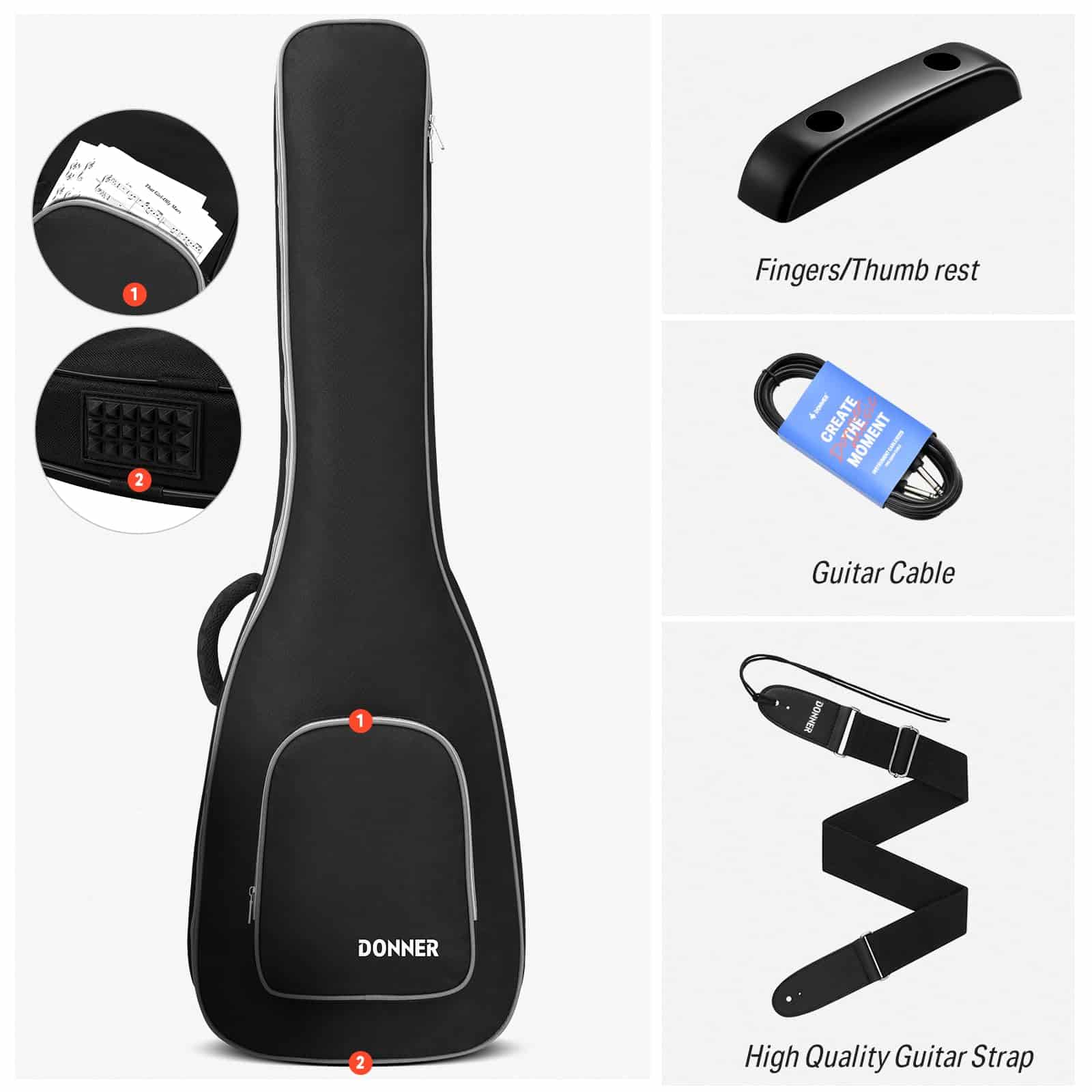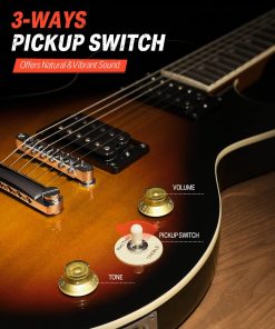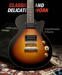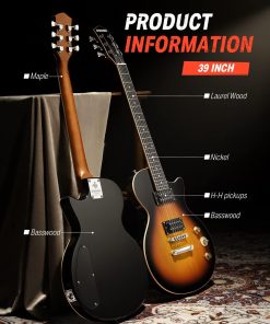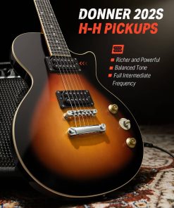 Este paquete de guitarra eléctrica Donner DLP-124 incluye la guitarra eléctrica Donner DLP-124, una buena bolsa de transporte, cable de guitarra, correa. ¡Ahorra tiempo y dinero con un paquete de guitarra eléctrica todo en uno! El DLP-124 cuenta con un cuerpo sólido de álamo con finos arcos, clavijas de afinación cromadas, cuerdas de níquel de buena calidad. Las clavijas de afinación están hechas de acero para facilitar la afinación y mantener la cuerda afinada en posición. No solo tiene todo lo que necesitas para aprender y tocar la guitarra eléctrica, sino que también tiene un precio tan asequible que no requiere una gran inversión. El DLP-124 ofrece un sonido natural y vibrante en tus manos a un gran precio con una selección de características convenientes y prácticas que harán que el guitarrista principiante de la casa esté tocando en poco tiempo. ¡Ofrece un tono suave ideal para rock and roll, blues y mucho más! El sonido natural y brillante complementa los sonidos cálidos de la madera sólida. ¡Recógelo y únete a la creciente afición por la guitarra! Disfruta de tu propia vida divertida y colorida. Nota: Si el artículo que recibes es diferente al que se muestra en la imagen, contáctanos y organizaremos el envío de los artículos lo antes posible. Especificaciones DLP-124S Color: Sunburst Amarillo Tamaño: Tamaño completo Orientación de la mano: Derecha Pastillas: H-H Controles: 1V 1T, 3 vías Material del cuerpo: AAA Alamo Sólido Africano Material del mástil: AAA Arce Canadiense Forma del mástil: Forma «C» Incrustaciones de posición: Marcas de puntos Número de trastes: 22 Máquinas de afinación: Acero Fundido incluido en el paquete: 1 x Guitarra eléctrica DLP-124S 1 x Cable de guitarra 1 x Bolsa grande 1 x Correa de guitarra