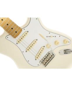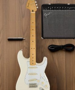 Rindiendo homenaje al electrizante «Voodoo Chile» que popularizó la guitarra Stratocaster y su tremenda flexibilidad sonora, la Fender Jimi Hendrix Stratocaster te brinda el mismo tono ardiente y sensación de juego para que los manejes a tu gusto. Llena de un tono vintage incendiario y estilo clásico, este instrumento extraordinario presenta toques característicos y detalles únicos basados en sus Guitarras distintivas «invertidas». La base del sonido y estilo de tocar personalmente único de Hendrix fue su costumbre de voltear sus guitarras y volver a encordarlas para acomodar su estilo de tocar zurdo, lo que resulta en un clavijero «invertido» y pastilla del puente – características reproducidas aquí con un detalle exacto. El clavijero «invertido» produce una longitud de cuerda más larga para las cuerdas graves, creando una sensación de juego más ajustada junto con una flexibilidad al doblar y vibrar las cuerdas agudas. Un trío de pastillas American Vintage ’65 de una sola bobina insuperables incluye una pastilla del puente invertida, produciendo un tono inspirador único con un sonido cálido y apretado y una definición y armónicos superiores mejorados. El mástil de arce con radio 9.5″ en forma de ‘C’ altamente versátil con trastes medium jumbo ofrece una superficie de juego más plana, ideal para acordes mientras te permite doblar las notas hasta lo más alto sin temor a trasteas durante solos abrasadores. Conmemorando el legado incomparable de Hendrix, el clavijero de estilo ’70s de gran tamaño lleva la firma del guitarrista en la parte trasera. Una placa de mástil única muestra una silueta del hombre y la inscripción grabada «auténtico Hendrix», dejando en claro la inspiración detrás de esta guitarra. Disponible en clásico Olympic White o negro, ambos con herrajes cromados e incluido un estuche, la Fender Jimi Hendrix Stratocaster es tu oportunidad para liberar tu propia música de «electric sky church».