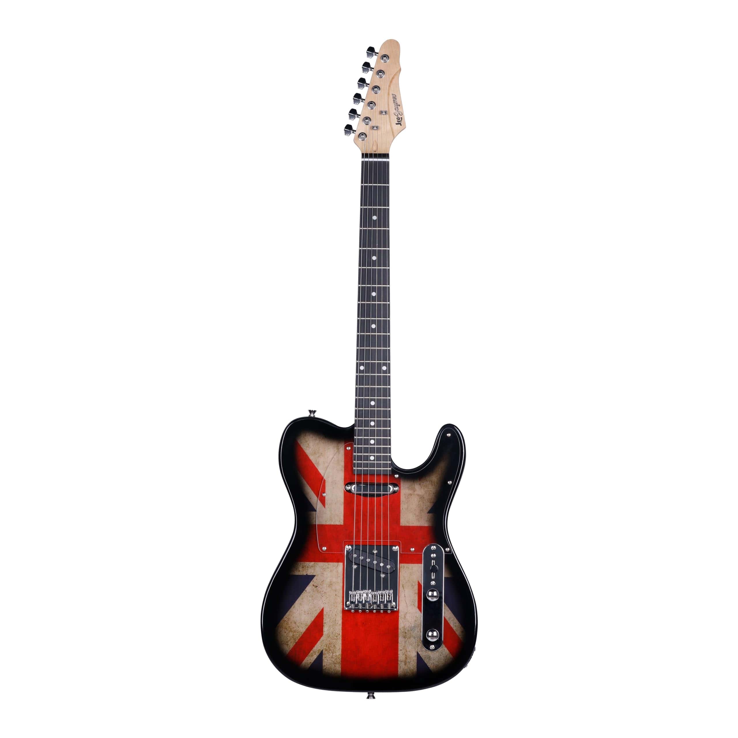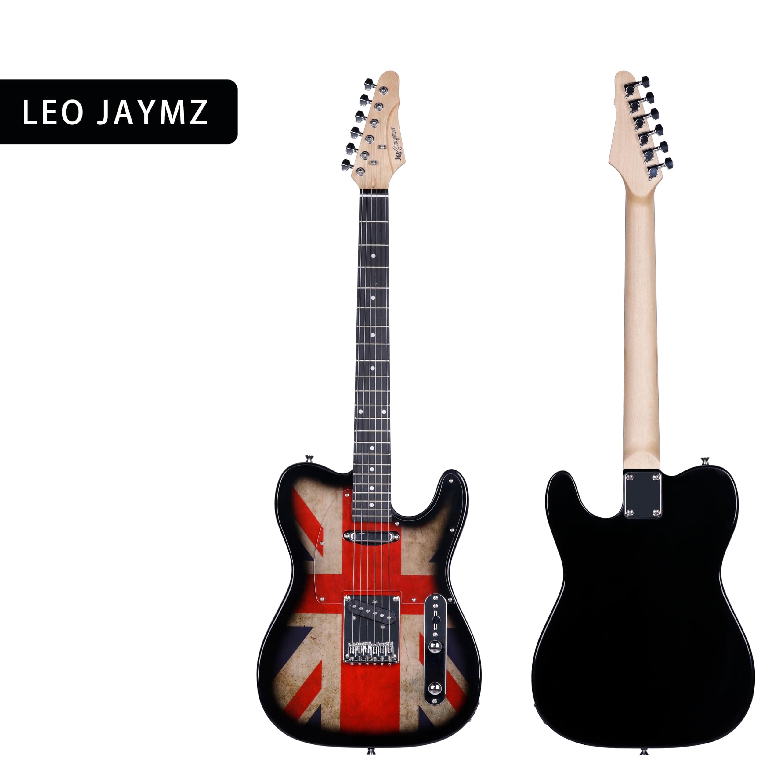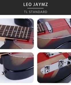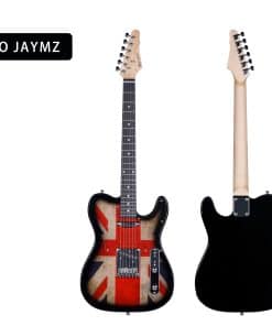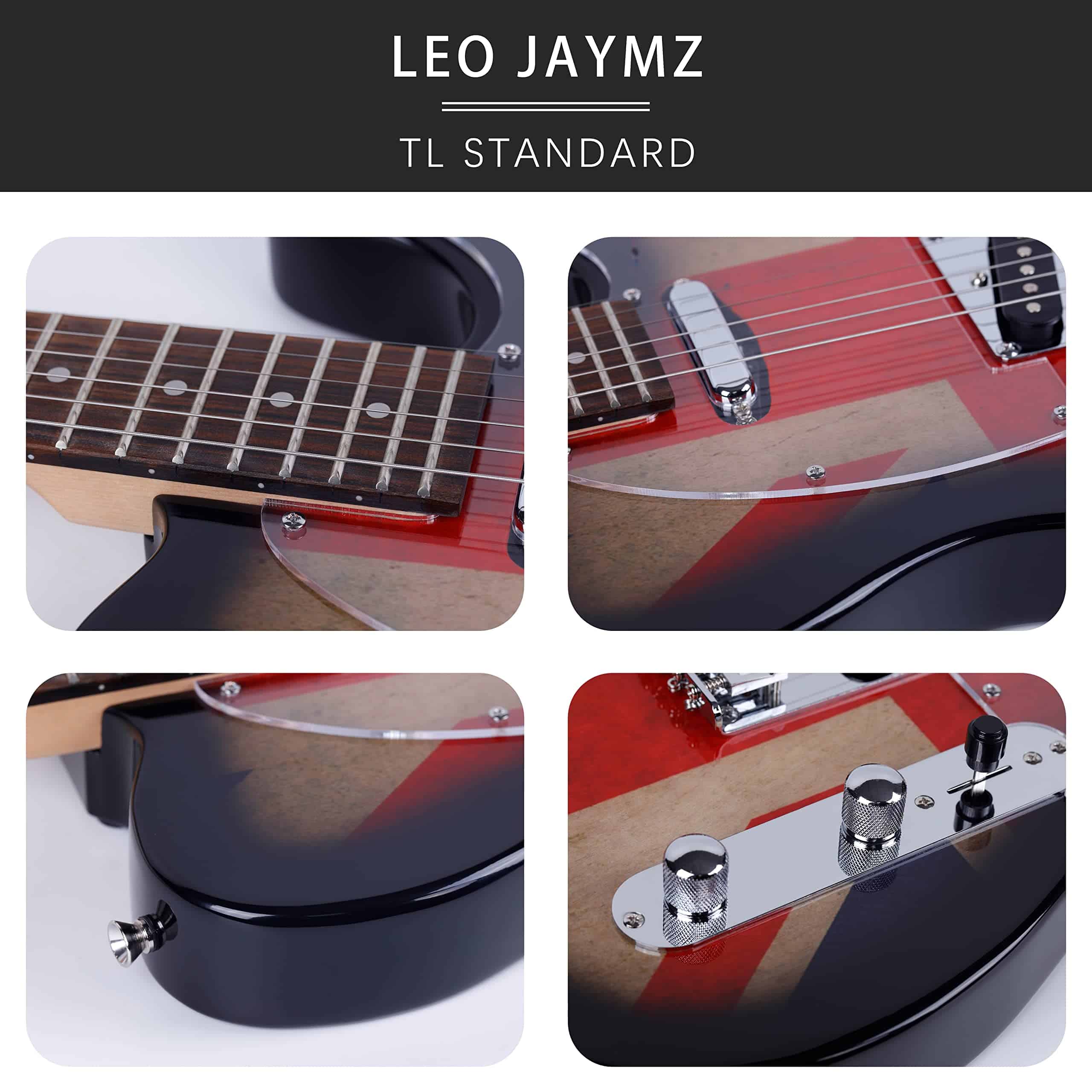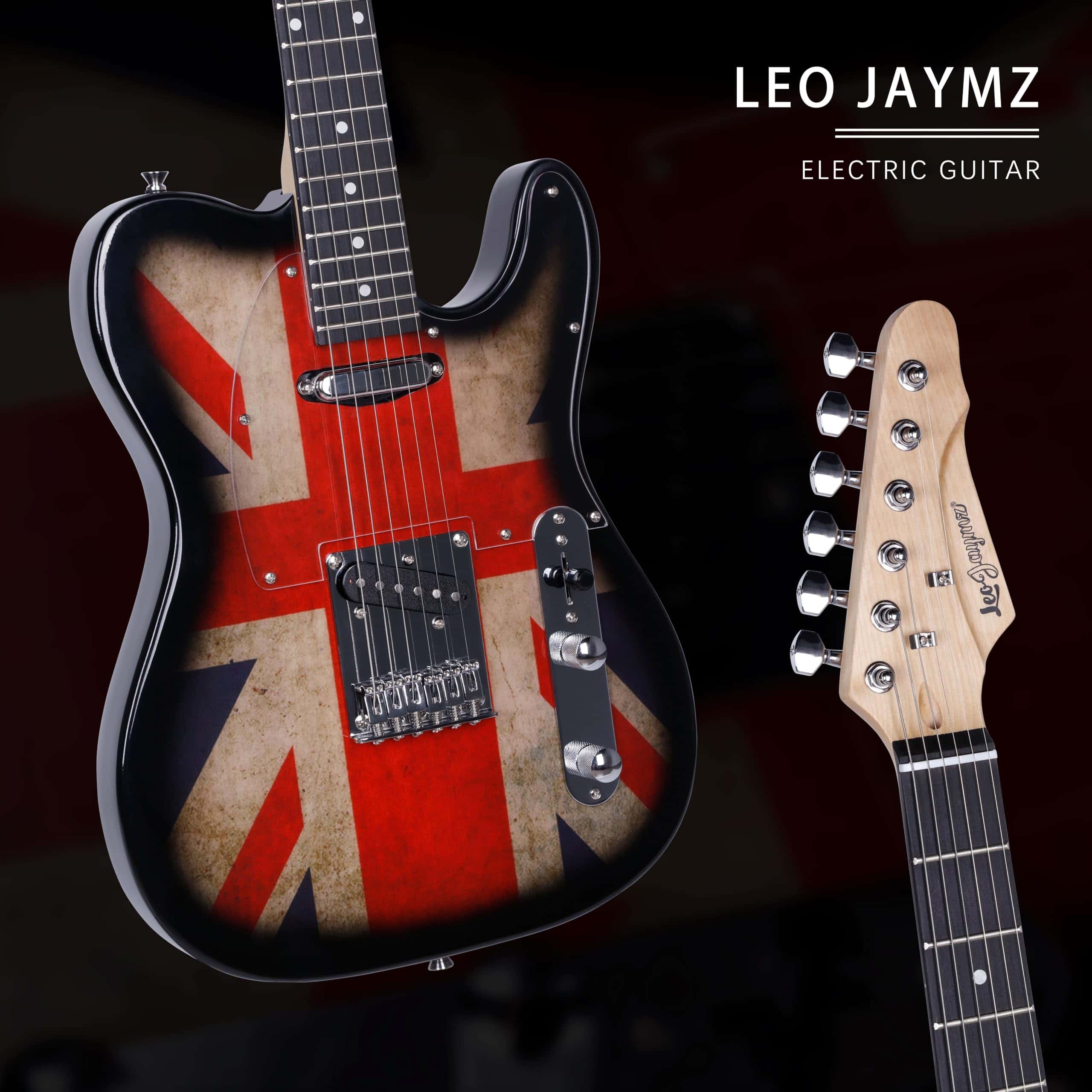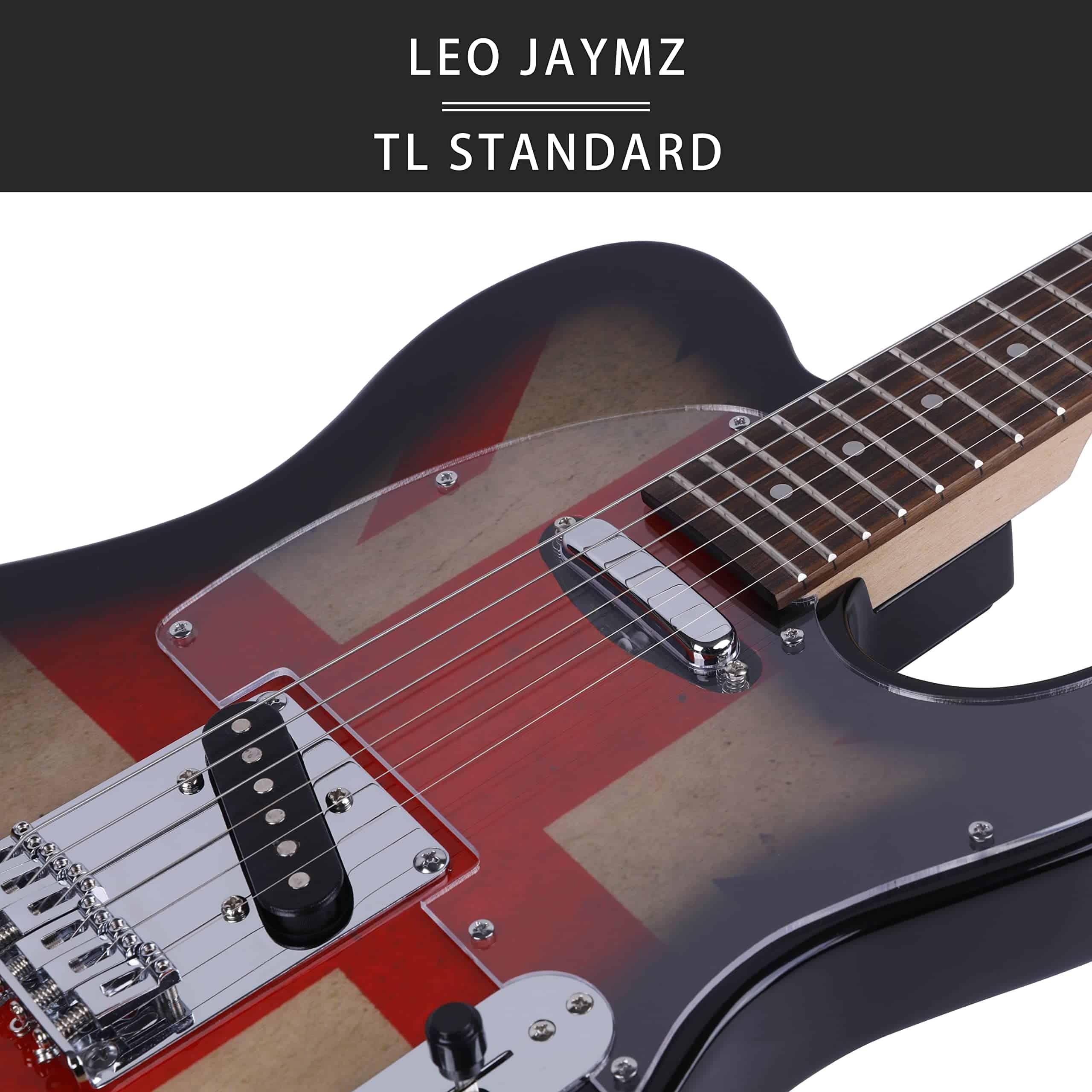 Guitarra Eléctrica Leo Jaymz Tipo TL con Calcomanía de Bandera del Reino Unido – Cuerpo de Caoba de Alto Brillo y Mango de Arce Duro – Golpeador de Acrílico Transparente de Alta Transparencia (Bandera del Reino Unido, Deluxe). La guitarra eléctrica Leo Jaymz Tipo TL es una hermosa pieza que destaca por su apariencia refinada y su excelente calidad de construcción. Con un cuerpo de caoba de alto brillo y un mango de arce duro, esta guitarra ofrece un timbre cálido y suave con un buen equilibrio. Las dos pastillas de bobina simple clásicas proporcionan un sonido claro, brillante y con una mayor potencia de penetración, mientras que el interruptor de pastilla de 3 vías ofrece diferentes opciones de tono. El puente de seis selletas ofrece una excelente entonación y opciones de configuración flexibles. Con una escala de 25.5, 22 trastes y un ancho de cejuela de 1.69″ / 42.85mm, esta guitarra es perfecta para músicos de todos los niveles. ¡Hazte con la Guitarra Eléctrica Leo Jaymz Tipo TL y disfruta de un sonido excepcional en tus interpretaciones musicales!