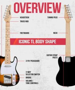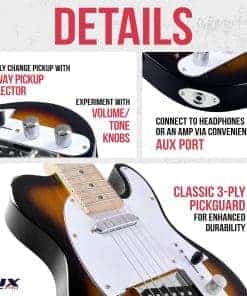1. LA LEGENDARIA GUITARRA ELÉCTRICA 30 | Instrumento de Guitarra Eléctrica Tamaño Completo que Ofrece la Última Experiencia Musical con 22 Trastes, Cómodo Perfil de Mango en Forma de C, Clásico Golpeador de 3 Capas, Sencillo Interruptor de 3 Vías, Control de Volumen, Control de Tono y Conexión de Salida AUX de Fácil Acceso | Perfecto para Principiantes, Intermedios y Avanzados. 2. HERMOSA CONSTRUCCIÓN SÓLIDA | La Silueta Premium de la década de 1950 Conserva Todas las Características Hermosas y Distintivas del Estilo Original | Duradero Cuerpo de Madera de Paulownia de Un Solo Corte, Mango de Madera de Arce Hecho a Mano, Puente de Metal Ashtray Vintage y Espeso Golpeador de 3 Capas Negro | Acabado Suave y Brillante en Butterscotch Blonde. 3. SONIDO, TONO Y ESTILO REVOLUCIONARIOS | Diseño Versátil de Mediados del Siglo Ofrece un Sonido Mejorado y Consistente con un Sencillo Interruptor de Pastillas de 3 Vías, Control de Volumen y Perillas de Ajuste de Tono | Disfruta de un Sonido Profesional con Resonancia, Intonación y Variedad Sonora desde Notas Más Brillantes y Agudas hasta Vibraciones Cálidas, Melosas y de Bajo. 4. EXTENSA DE CARACTERÍSTICAS AMIGABLES PARA EL INTÉRPRETE | Nuestra Auténtica Guitarra Eléctrica Requiere un Mantenimiento Mínimo, para que los Aspirantes a Dioses del Rock puedan Concentrarse en su Artesanía | Clavijas de Afinación Clásicas de Alta Calidad Evitan la Acumulación de Polvo y Suciedad para Muchos Años de Afinación Precisa, Mientras que el Cuerpo y Mango de Madera Anti-Deformación se Limpien Fácilmente con un Paño Seco y Suave. 5. ACOMODA TODOS LOS ESTILOS DE INTERPRETACIÓN | El Estilo Amado Aporta un Sonido Que Desafía Géneros a Cada Banda o Artista en Solitario, Complementando una Gran Variedad de Instrumentos y Vibes Musicales Incluyendo Rock & Roll, Pop, Blues, Jazz, Country, Folk, R&B, Reggae, Punk y Más Allá | Regalo Perfecto para Cumpleaños, Navidad, Vacaciones, Graduación y Más