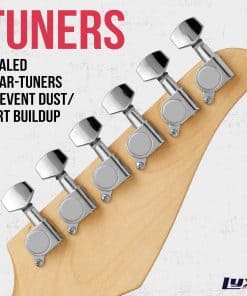 Con su resistente cuerpo de madera de Paulownia, cómodo mástil de arce en forma de C, puente de estilo vintage y otros acentos retro, este impresionante instrumento combina el estilo clásico con la calidad de sonido sin igual de LyxPro.