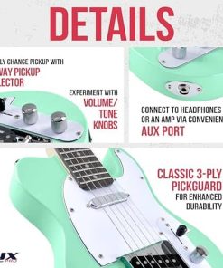 Lleva contigo todo el twang de la legendaria Guitarra Eléctrica Vintage a una era pasada de la realeza del rock con esta impresionante Guitarra de 30 pulgadas de LyxPro. Con todas las cualidades tradicionales del amado estilo Original, este popular modelo es querido por los músicos principiantes, intermedios y avanzados de todo el mundo. Con su resistente cuerpo de madera de Paulownia, cómodo mástil de arce en forma de C, puente de estilo vintage y otros acentos retro, este impresionante instrumento fusiona el estilo clásico con la inigualable calidad de sonido de LyxPro. Un diapasón hecho a mano hace que tocar sea un placer, mientras que un avanzado interruptor de 3 vías, perillas de tono y volumen permiten una perfecta entonación y control de audio. ¡Simplemente enchúfate, toma una púa -incluidas dos- y descubre la diferencia LyxPro! ¡Agrega una Guitarra Eléctrica de 30 pulgadas a tu carrito hoy! Qué recibirás: 1 x Guitarra Eléctrica de 30 pulgadas 2 x Púas de guitarra Manual de usuario Especificaciones: Cuerpo: single cut, Paulownia Mástil: en forma de C, arce Clavijeros: engranajes sellados Trastes: 22 Puente: 3-saddle, cenicero Pastilla: selector de 3 vías Puerto AUX: sí