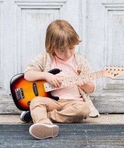 La Guitarra Eléctrica Mini Winzz EGM100-S está construida pensando en los niños. Está hecha con un cuerpo de madera sólida duradero de alta calidad, cuello de arce y diapasón de arce. El EGM100-S cuenta con clavijas de máquina cromadas, control de volumen y una pastilla de bobina simple. Los accesorios incluyen una funda, cable, correa, 2 púas, amplificador y una llave; ¡todo lo que tu hijo necesita para empezar!