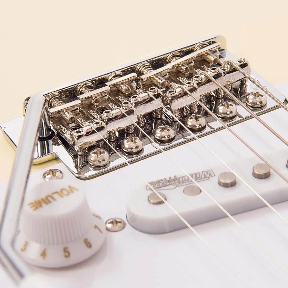 La Serie ReIssued Vintage V6VW combina lo mejor de estéticas probadas en el tiempo y la ingeniosidad del diseño vanguardista. Un trío de pastillas Wilkinson WVS Alnico V le dan a la guitarra el equilibrio perfecto entre agudos abrasadores, medios ricos y bajos potentes, justo lo que esperarías de una guitarra de esta naturaleza. El puente vibrato Wilkinson, por otro lado, cuenta con un bloque perforado en escalera innovador que mejora radicalmente la entonación de la guitarra, manteniendo una precisión increíble al retornar al tono. Ya sea que estés buscando tu primera guitarra o tu última, cada miembro de la Serie ReIssued Vintage es un tesoro. ¡A tocar!