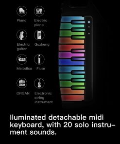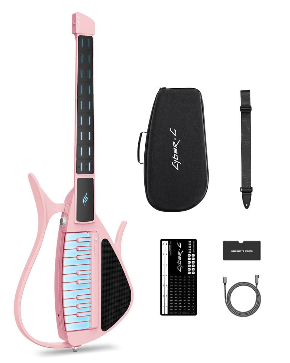 1.¡Una Nueva Forma de Tocar! ¡Aprende a tocar y cantar en solo 3 minutos! Esta invención revolucionaria cuenta con 20 sonidos de instrumentos incorporados, incluyendo guitarra eléctrica acústica, guitarra acústica, guitarra eléctrica, bajo, piano digital, flauta y más. También puede funcionar como altavoz para actuaciones en solitario, transformándote en un grupo de un solo hombre repleto de brillantez. 2.¡Sigue las Luces, Toca con Facilidad! La guitarra Cyber-G revoluciona el proceso de aprendizaje tradicional eliminando la complejidad. No se necesita experiencia musical, solo presiona donde las luces te guían, y cualquiera puede convertirse en músico. 3.¡Creatividad Infinita con los Presets de la Aplicación! Cyber-G permite cambiar sin problemas entre casi 100 patrones de ritmo y estilos de acompañamiento de bajo y batería para guitarras acústicas, eléctricas y pianos. Sin cambiar la posición de los dedos, simplemente toca la aplicación para desbloquear varias técnicas como arpegio, rasgueo, silencio, riffs, distorsión de potencia, acordes de cejilla y patrones rítmicos en jazz, country, reggae y más. 4.Teclado Luminoso Para Tocar en Solitario! El teclado luminoso integrado en el cuerpo de la guitarra hace que Cyber-G sea un placer de tocar. El módulo de acordes de la mano izquierda permite un acompañamiento sin esfuerzo, mientras que el teclado multifuncional de la mano derecha te permite dominar introducciones, interludios, solos y melodías con perfección. 5.¡Portátil y Versátil! El teclado extraíble permite actuaciones independientes, y el cuerpo de la guitarra plegable facilita los viajes. Además, es compatible con una amplia gama de dispositivos, incluyendo auriculares, micrófonos y pedales de pie, garantizando una versatilidad inigualable.