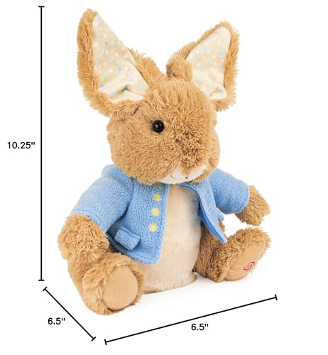Compra personajes clásicos del entrañable mundo ilustrado de Beatrix Potter. ¡El amado personaje de Beatrix Potter, Peter Rabbit, está celebrando su 120 aniversario! ¡Celebra con este especial Peter Rabbit animado Peek-a-Ears, listo para jugar un juego de cucú contigo! Este muñeco de peluche Peter Rabbit animado de 11″ clásicamente diseñado presenta la chaqueta azul conocida de Peter y orejas móviles sobredimensionadas, que se activan cuando se presiona el botón en su pie izquierdo. Peter se esconde detrás de sus orejas antes de volver a subir para sorprender y deleitar a los niños con un juego interactivo de cucú. Durante el juego, Peter también dice frases juguetonas con su adorable acento británico! Este muñeco de peluche Peter Rabbit es lavable en superficie para una limpieza fácil y apropiado para edades de un año en adelante. Cada peluche interactivo también requiere tres pilas AA para funcionar (incluidas).