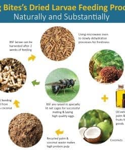 Los gusanos de mosca soldado negro son secados en el microondas. Impulso de Calcio Superior para Pollos, Mejor que los Gusano Secos, Alimento para Aves Ideal para Muda y Ponedoras. La calidad superior de los gusanos de mosca soldado negro secos establece el estándar de excelencia con su calidad superior y tamaño máximo. Estos son los mejores gusanos de mosca soldado negro secos disponibles para tus aves. Nuestros Gusanos de Mosca Soldado Negro (GMSN) son una excelente alternativa al alimento tradicional para aves de corral, ya que son ricos en proteínas y ácidos grasos omega 3. Estos gusanos secos proporcionan una dieta natural y saludable que puede ayudar a mejorar la calidad de sus huevos. Los GMSN también son un excelente alimento para aves silvestres, como azulejos, aves cantoras y patos, ya que proporcionan una dieta rica en proteínas y nutrientes que pueden ayudar a mejorar su salud y bienestar. Nuestros GMSN se crían y procesan de manera sostenible, utilizando solo materiales y técnicas de la más alta calidad. Monitorizamos cuidadosamente nuestros procesos de producción para garantizar que nuestros gusanos sean seguros, saludables y de la más alta calidad. Nuestros GMSN también son una alternativa ecológica al alimento tradicional para aves de corral, ya que requieren menos espacio, menos agua y menos energía para producirse que el alimento tradicional para aves de corral. Esto significa que son una opción más sostenible y rentable para agricultores y propietarios de aves de corral por igual.