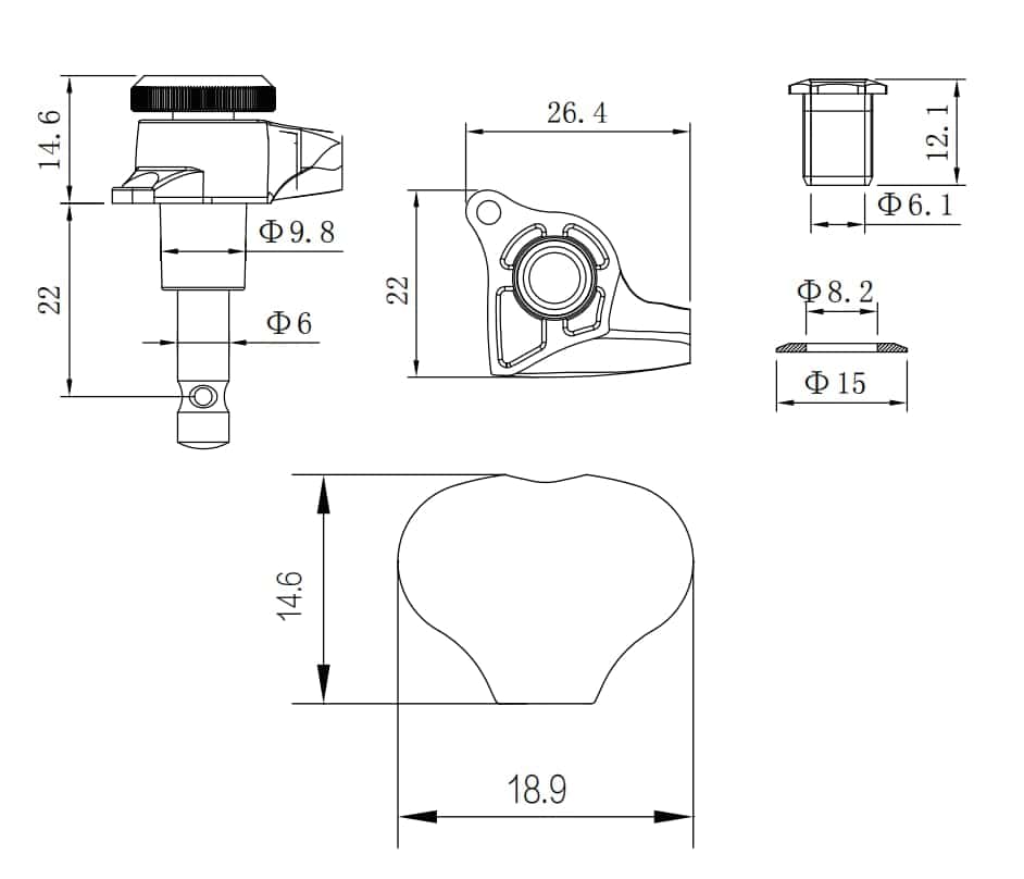 Guyker locking tuners help to provide finer tuning and greater stability. Comfortable and easy for adjustment of string tension. Gear Ratio – 1:18, designed to fit modern 10mm headstock holes. Semicircle shaped button with sealed housing and 45 degree fixing tag. Please check the parameter drawing in the attached pics before placing your order.