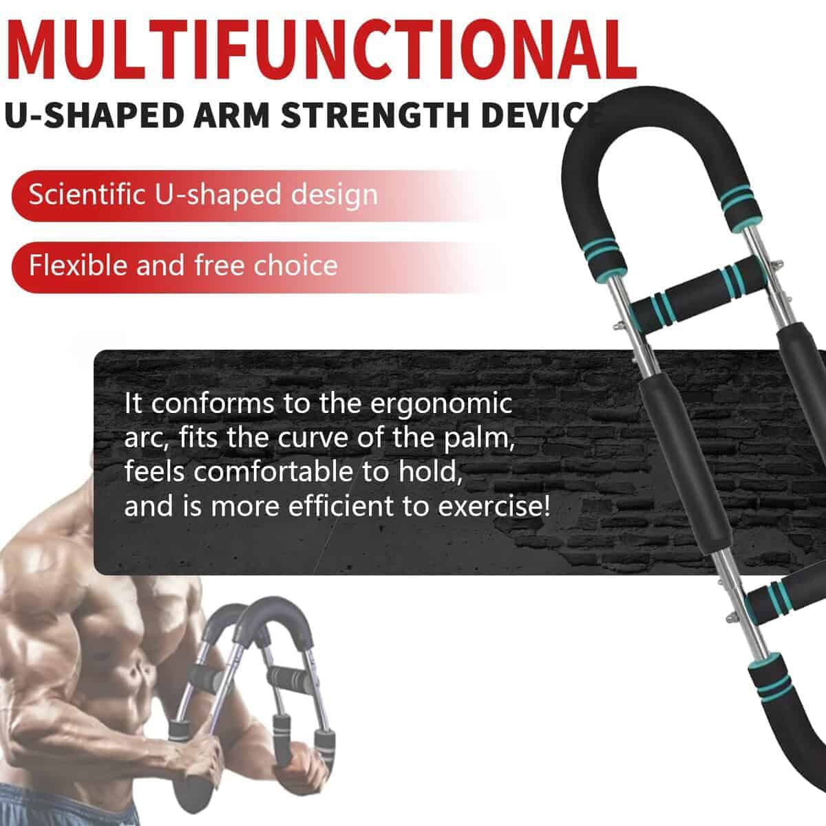 3. Mango en forma de U: El entrenador de brazos adopta un diseño de mango ligeramente inclinado en forma de U, que se ajusta a la palma y es fácil de agarrar. Está envuelto en espuma de dos colores de forma redonda, suave y cómodo, y no duele al presionar.