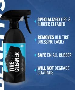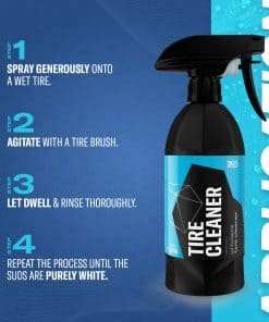El Limpiador de Neumáticos Gyeon te ayuda a eliminar fácilmente la suciedad, la mugre y los recubrimientos antiguos de tus neumáticos. Los neumáticos sucios pueden ser un verdadero fastidio, especialmente si el resto de la pintura parece un espejo. Antes de poder vestir los neumáticos para agregar ese contraste oscuro y profundo que todos buscamos, tendrás que eliminar la suciedad y la mugre en la superficie. La fórmula única fue diseñada para ayudar a limpiar tus neumáticos y otros cauchos alrededor de tu vehículo. El Limpiador de Neumáticos penetrará profundamente en la estructura porosa del material y aflojará la suciedad acumulada, la mugre de la carretera, los aceites, etc. También disolverá capas de recubrimientos antiguos para ayudar a preparar la superficie antes de aplicar nuevos recubrimientos (por ejemplo, Gyeon Tire Express). Gyeon señala que el Limpiador de Neumáticos es seguro en llantas con recubrimiento cerámico, sin interferir con la capa de protección o reducir su cualidad hidrofóbica. Esto permite su uso como limpiador de ruedas regular o diario si así se desea. CONSEJO: Pulveriza generosamente en un neumático mojado y agita con un cepillo de rigidez media a rígida. Deja actuar y enjuaga con una lavadora a presión. Continúa hasta que todas las espumas se vuelvan blancas. Consumo Estimado por el Fabricante: 20ml por neumático Recubrimiento Seguro: Sí Nivel de PH: 12