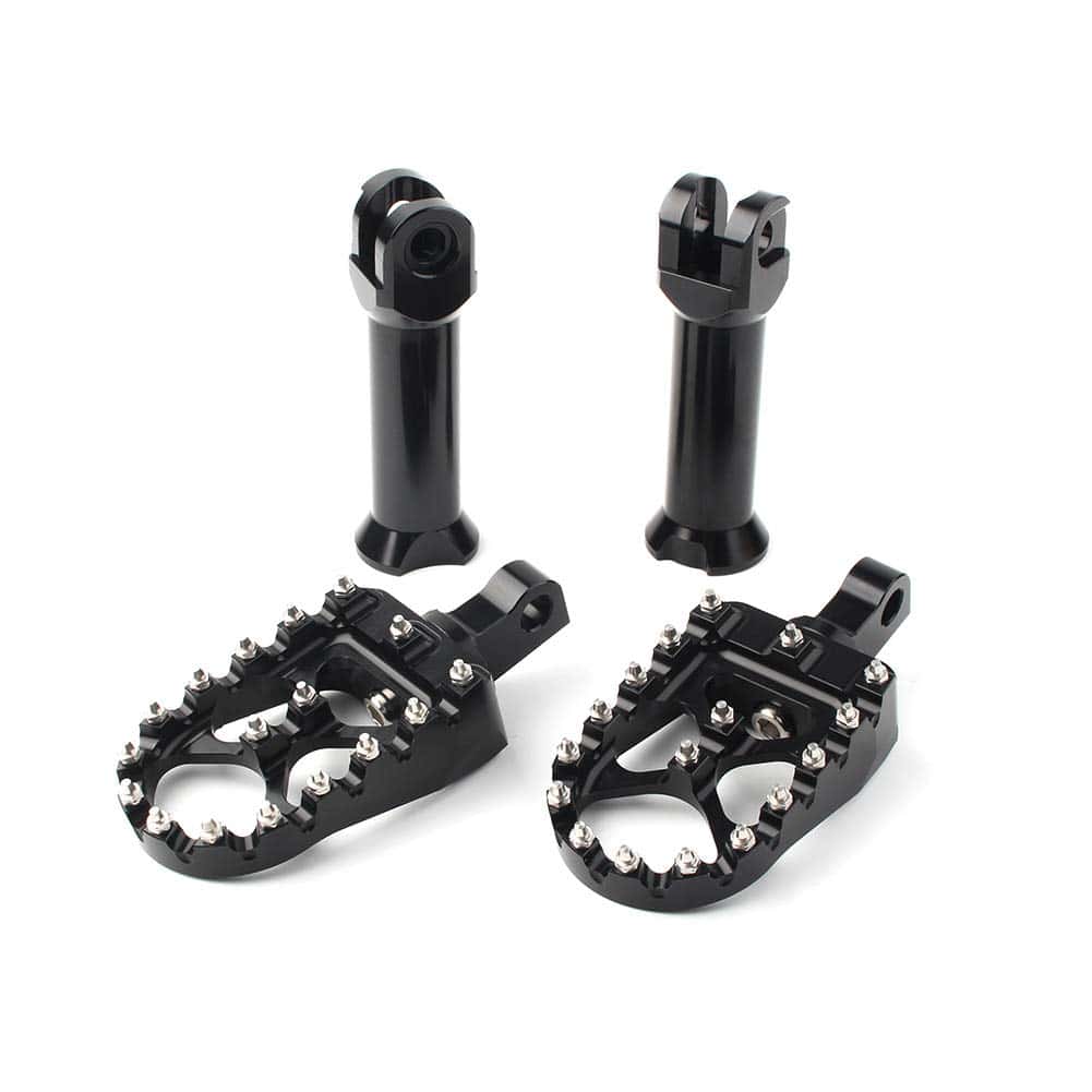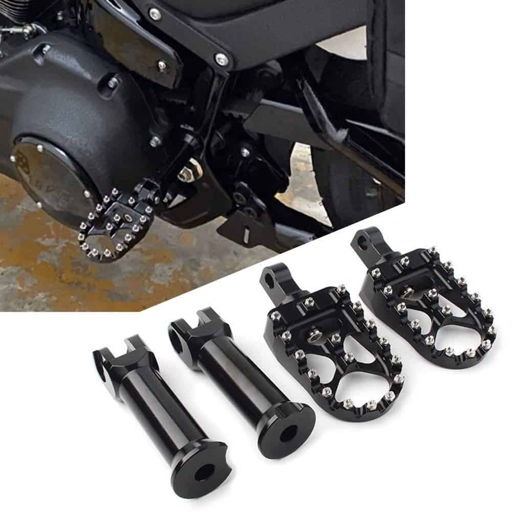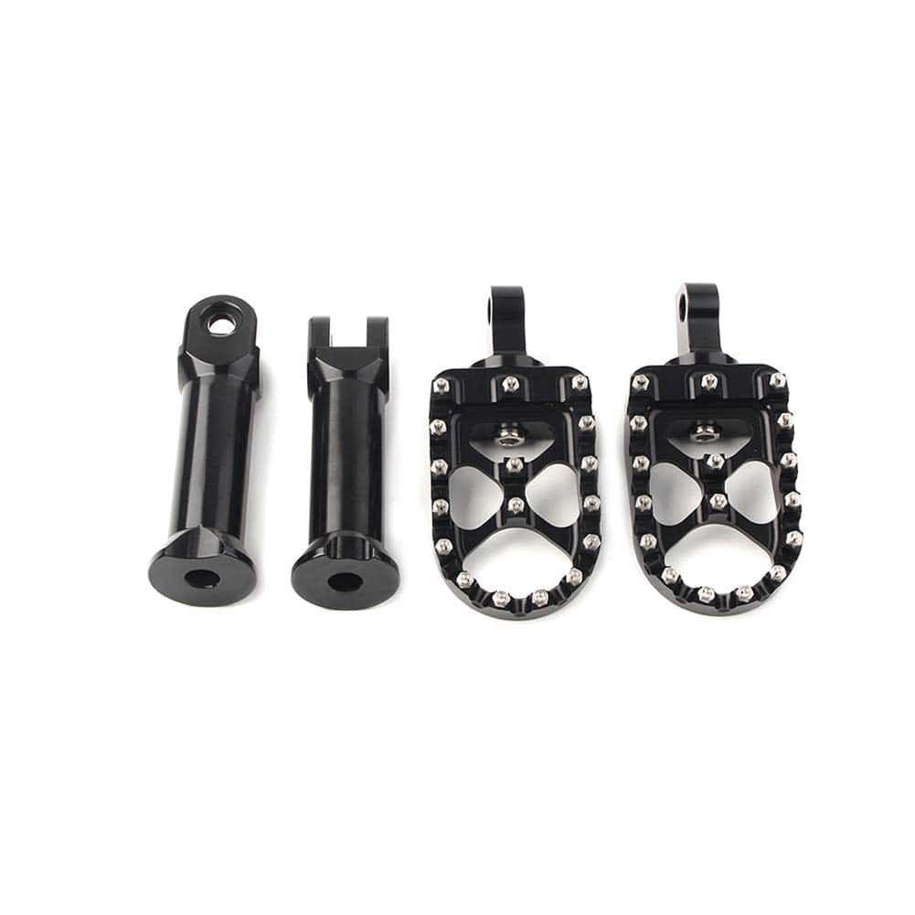 Los reposapiés para pasajeros de motocicleta GZYF estilo MX están diseñados para ofrecer la máxima comodidad y seguridad al conducir tu Harley. Compatible con una variedad de modelos de Softail y otros modelos, estos reposapiés son duraderos y resistentes, fabricados con aluminio de alta calidad y dientes antideslizantes de acero inoxidable. Con dientes afilados en la superficie, proporcionan un agarre estable y seguro para tu pie, mejorando la seguridad en carretera. La instalación es sencilla y segura mediante los soportes de montaje incluidos. Disfruta de la comodidad y el estilo que estos reposapiés GZYF te ofrecen en tus aventuras en moto.