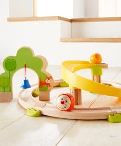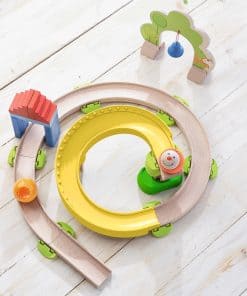 Muchas curvas para una diversión loca de Kullerbu; amplio, adaptable y expansible mundo de juego de pista de bolas con muchos efectos especiales; alturas diferentes para un impulso máximo; 1 arco con campanita, 1 curva empinada para bolas, 5 curvas, 2 pistas rectas, 2 columnas, 8 elementos conectores, 1 bloque de inicio, 1 bola Paul, 1 bola; material: madera de haya, contrachapado, metal.