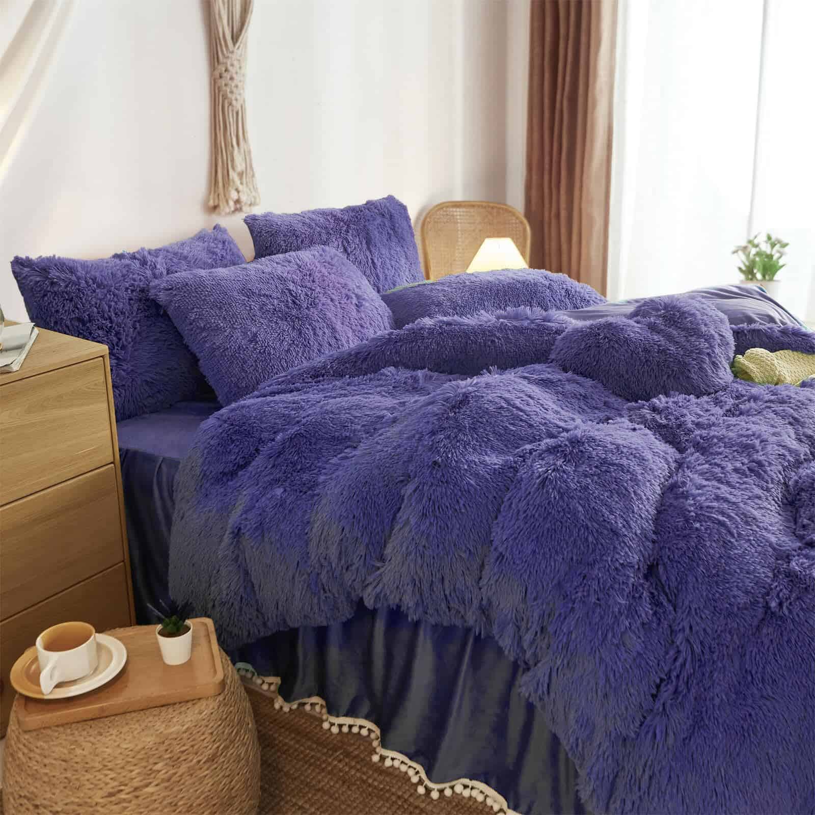 HAIHUA Funda de edredón de lujo de piel sintética azul