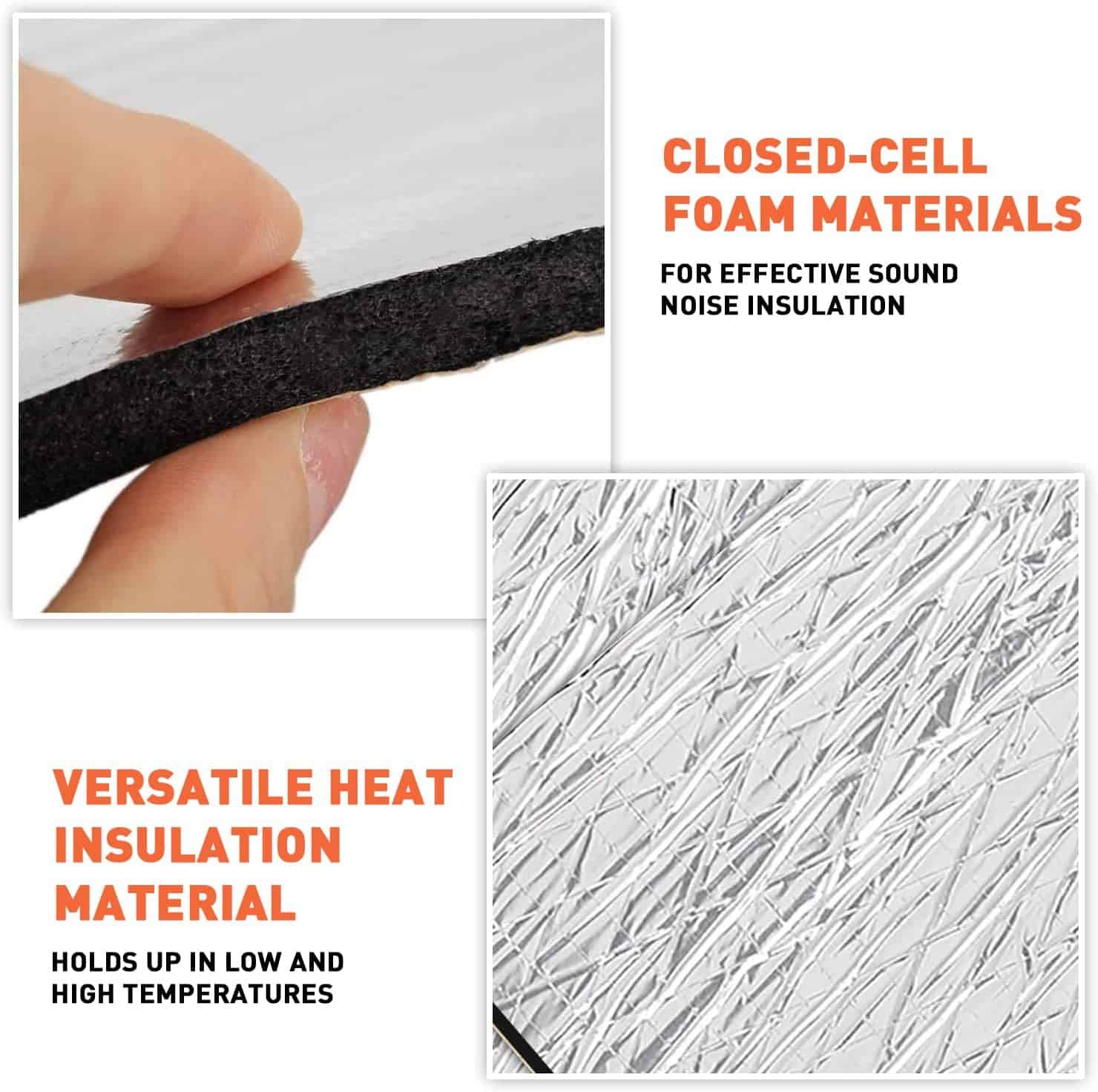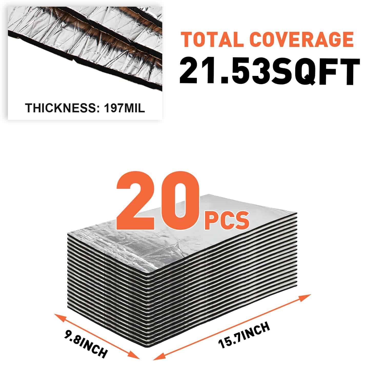 1. Excelente aislamiento: Esta manta de blindaje térmico para automóvil tiene una capa adhesiva y es un material de aislamiento térmico versátil con un rendimiento excelente en aislamiento térmico. Puede mantener el automóvil caliente en invierno y fresco en verano y mantenerlo a una temperatura cómoda. 2. Reducción de ruido: Las alfombrillas de aislamiento acústico para automóviles están hechas de materiales de aislamiento acústico de espuma de celda cerrada, que pueden eliminar y bloquear de manera efectiva el ruido del motor, las vibraciones y el ruido por fricción durante la conducción, brindándole un espacio de conducción tranquilo y mejorando enormemente la comodidad al conducir. 3. Acabado de lámina de aluminio premium: Terminado con lámina de aluminio de grado 5A, este revestimiento de aislamiento resiste aceite, agua y calor, bloquea eficientemente la radiación UV y el calor y amortigua el ruido con un uso duradero. 4. Especificaciones: Cantidad: 20 piezas, Tamaño: 15.7″ x 9.8″, Espesor: 197mil, Área de cobertura total: 21.53 pies cuadrados, fácil de cortar e instalar para satisfacer sus necesidades. 5. Ampliamente utilizado: Ampliamente utilizado en techos de automóviles, capós, cortafuegos, chasis, particiones interiores y exteriores, maleteros, guardabarros, paneles de carrocería, debajo de los asientos, cubiertas de maleteros, etc.